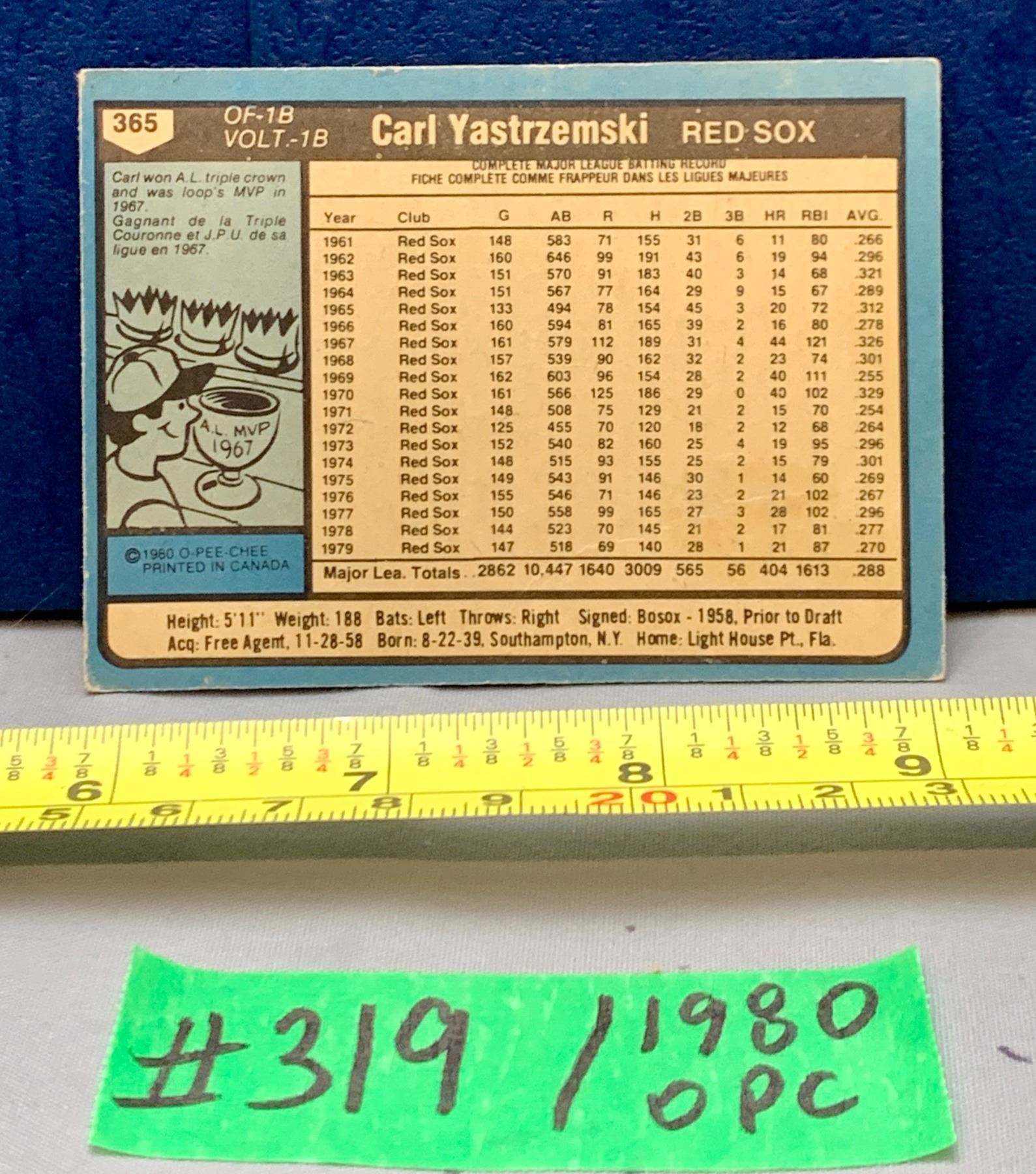 MLB Baseball Card - 1980 OPC Vintage Carl Yastrzemski #365
