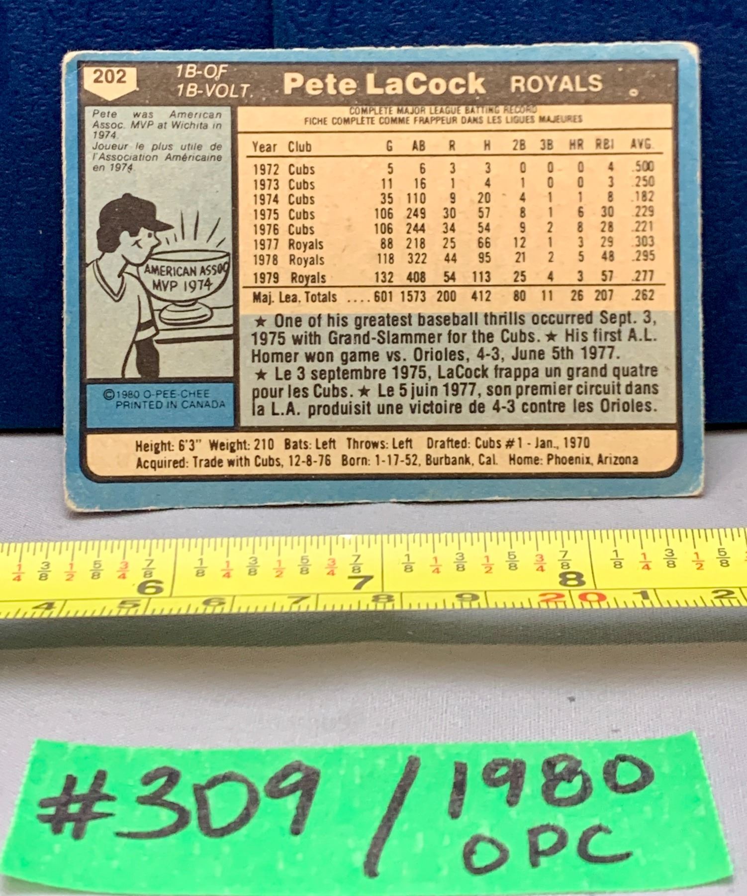 MLB Baseball Card - 1980 OPC Vintage Pete LaCock #202