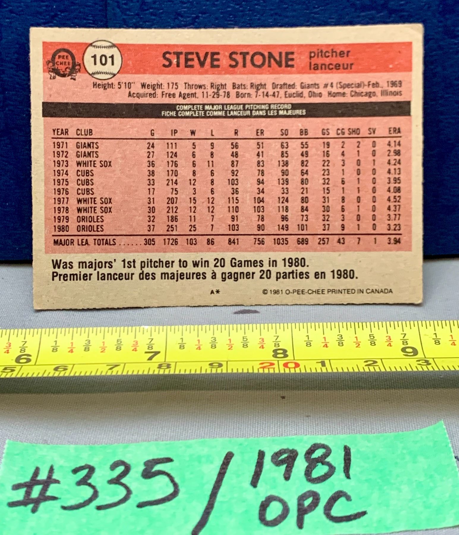MLB Baseball Card - 1981 OPC Vintage Steve Stone All Star #101