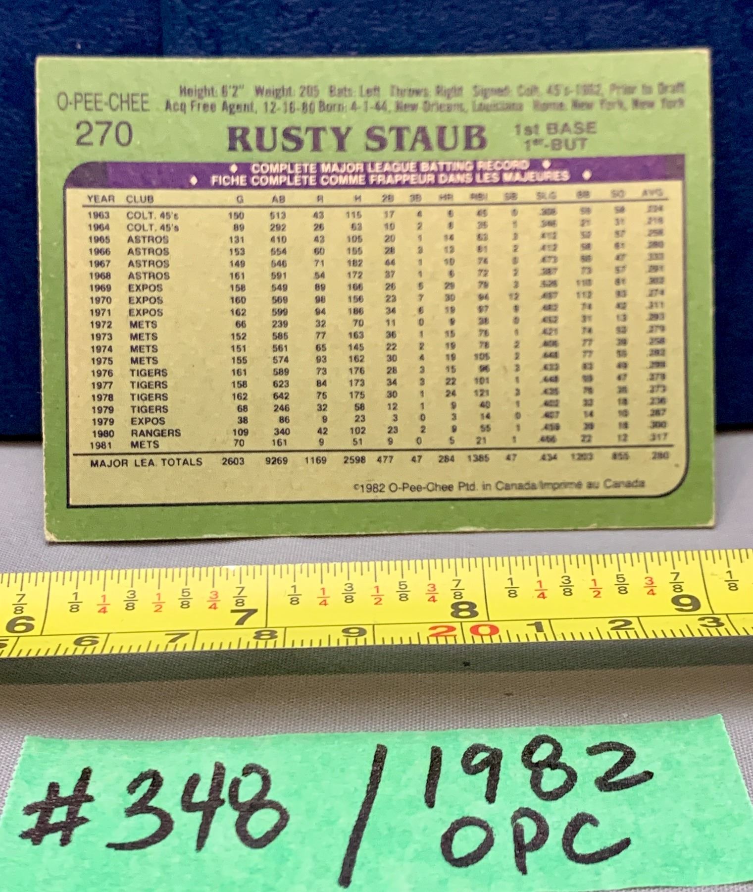 MLB Baseball Card - 1982 OPC Vintage Rusty Staub #270