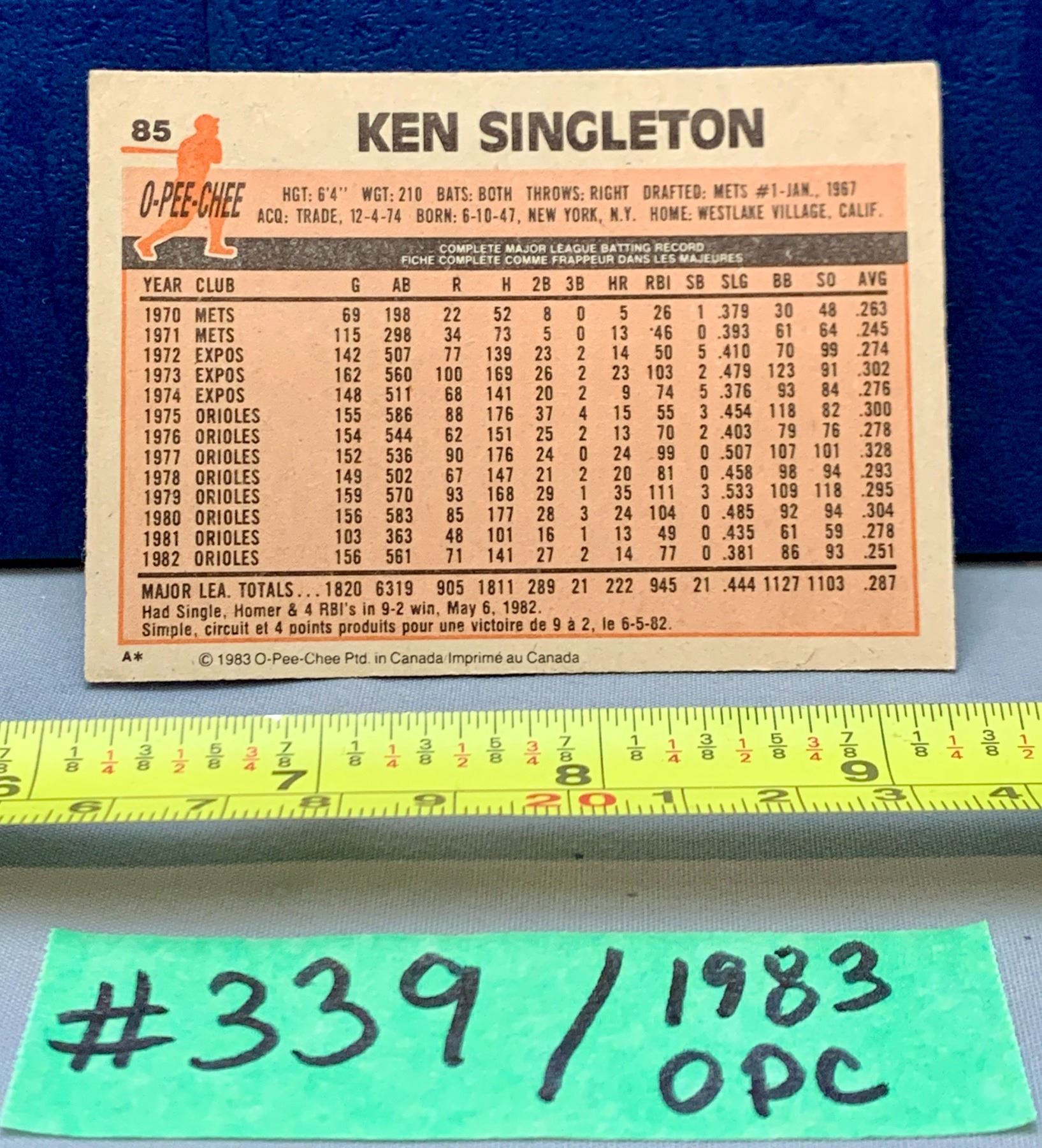 MLB Baseball Card - 1983 OPC Vintage Ken Singleton #85