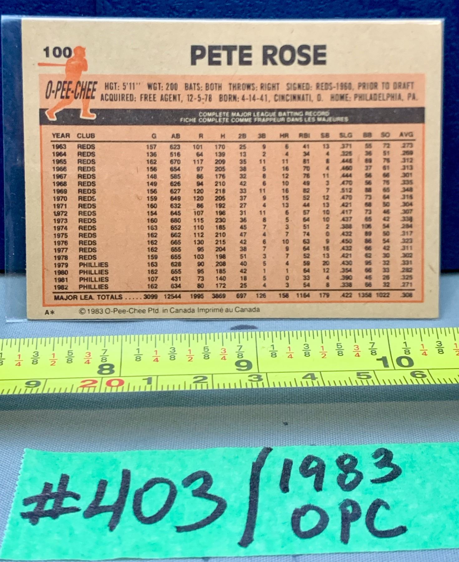 MLB Baseball Card - 1983 OPC Vintage Pete Rose All Star Card #337 Rare!