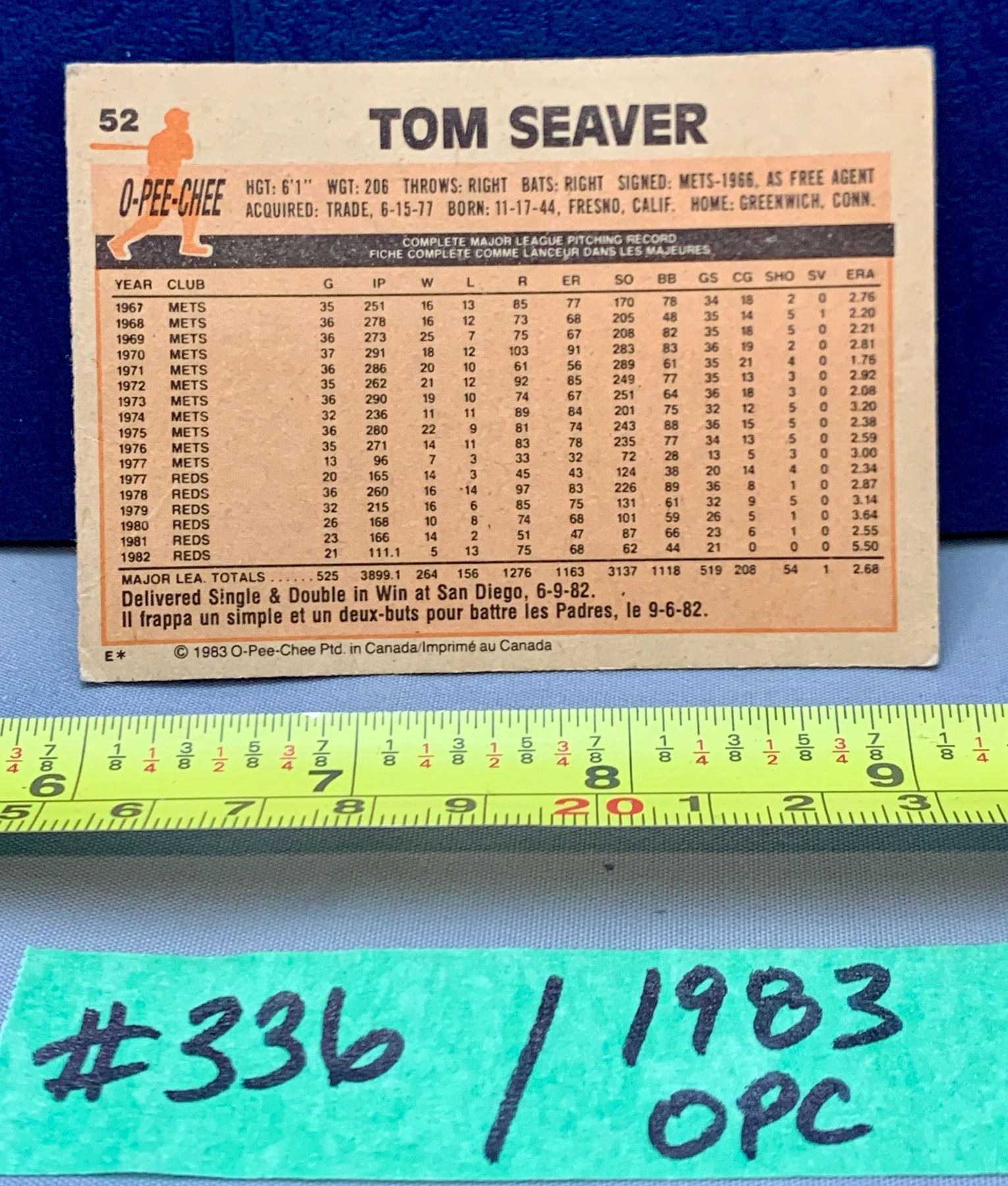 MLB Baseball Card - 1983 OPC Vintage Tom Seaver #52