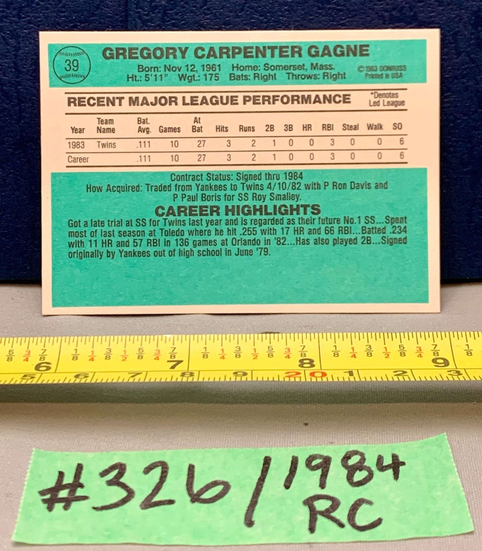 MLB Baseball Card - 1984 Donruss Vintage Greg Gagne Rookie Card #39