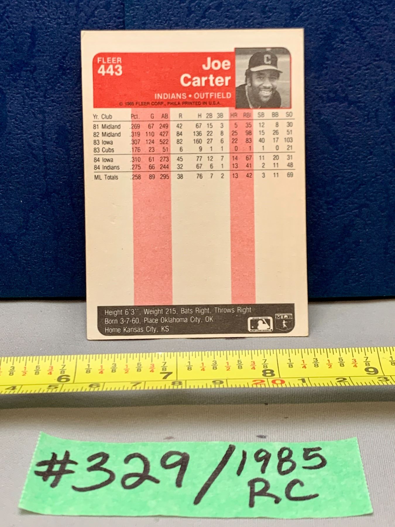 MLB Baseball Card - 1985 Fleer Vintage Joe Carter Rookie Card #443