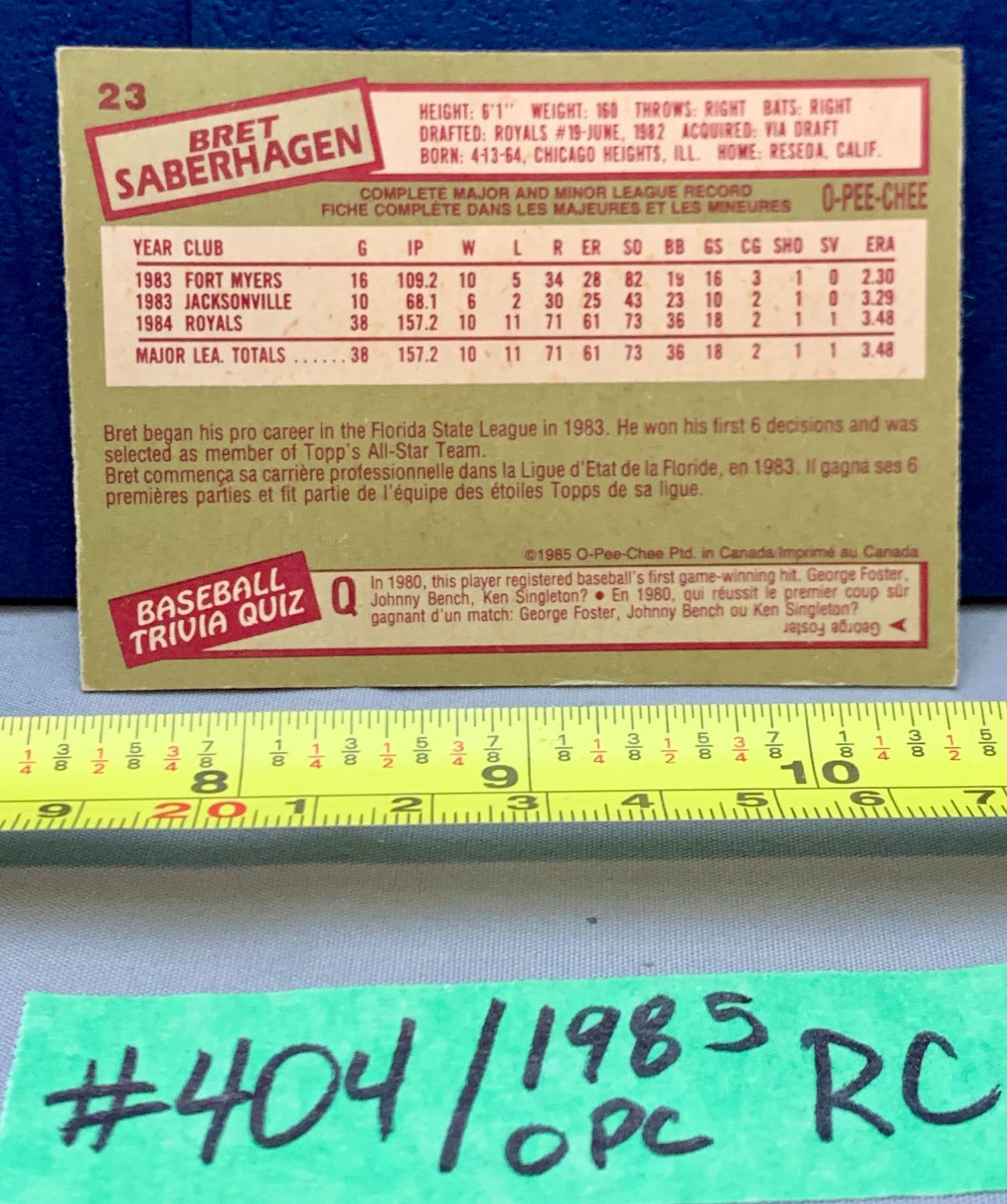 MLB Baseball Card - 1985 OPC Vintage Bret Saberhagen Rookie Card RARE!