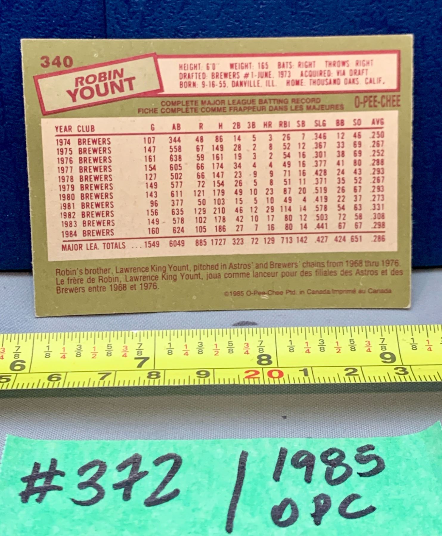MLB Baseball Card - 1985 OPC Vintage Robin Yount
