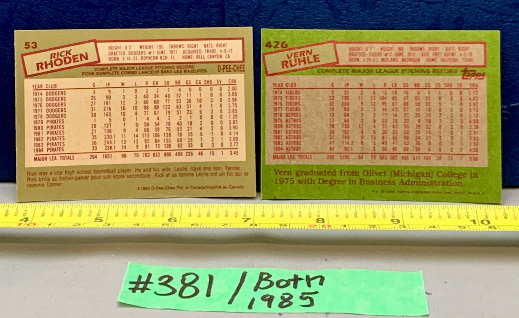MLB Baseball Card - 1985 Vintage Rick Rhoden & Vern Ruhle