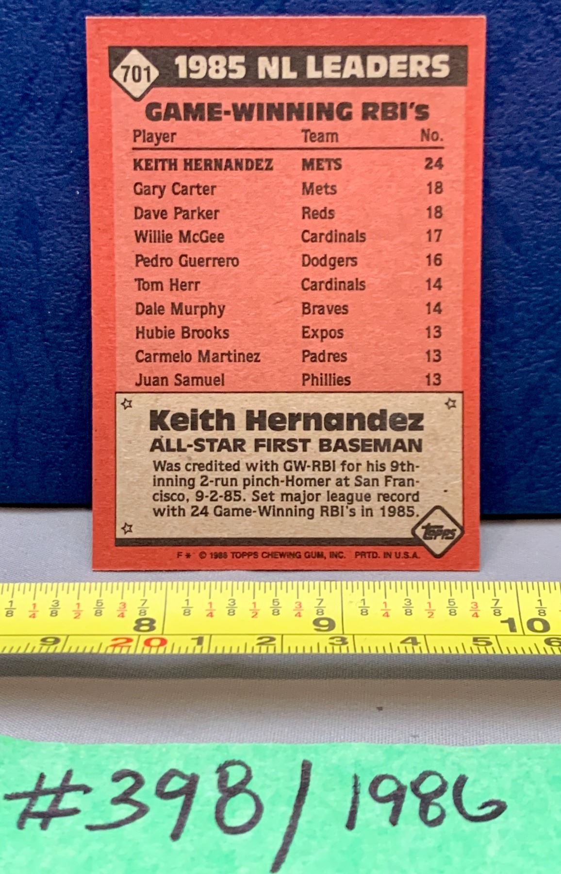 MLB Baseball Card - 1986 OPC Vintage Keith Hernandez All Star