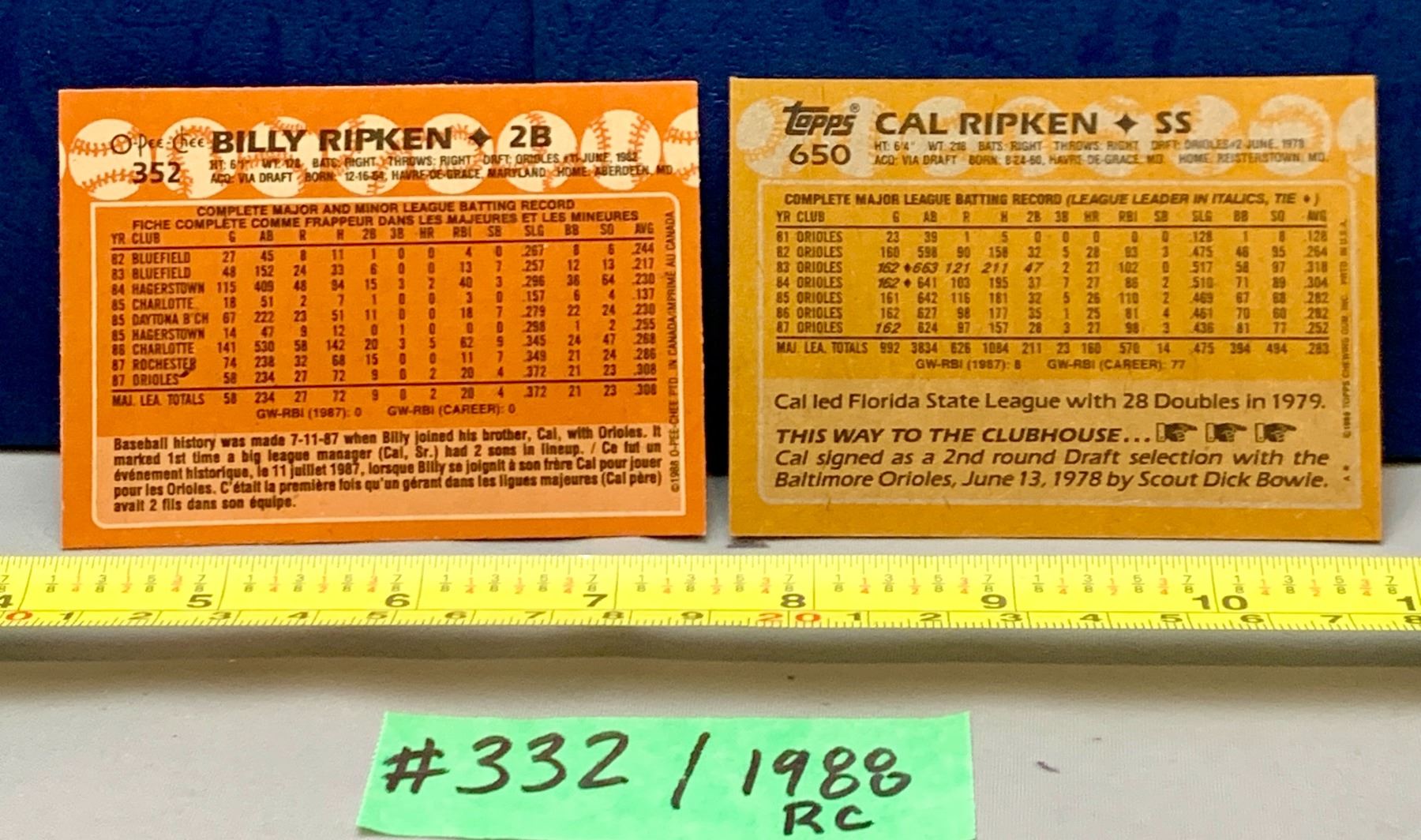 MLB Baseball Card - 1988 Vintage Billy & Cal Ripken