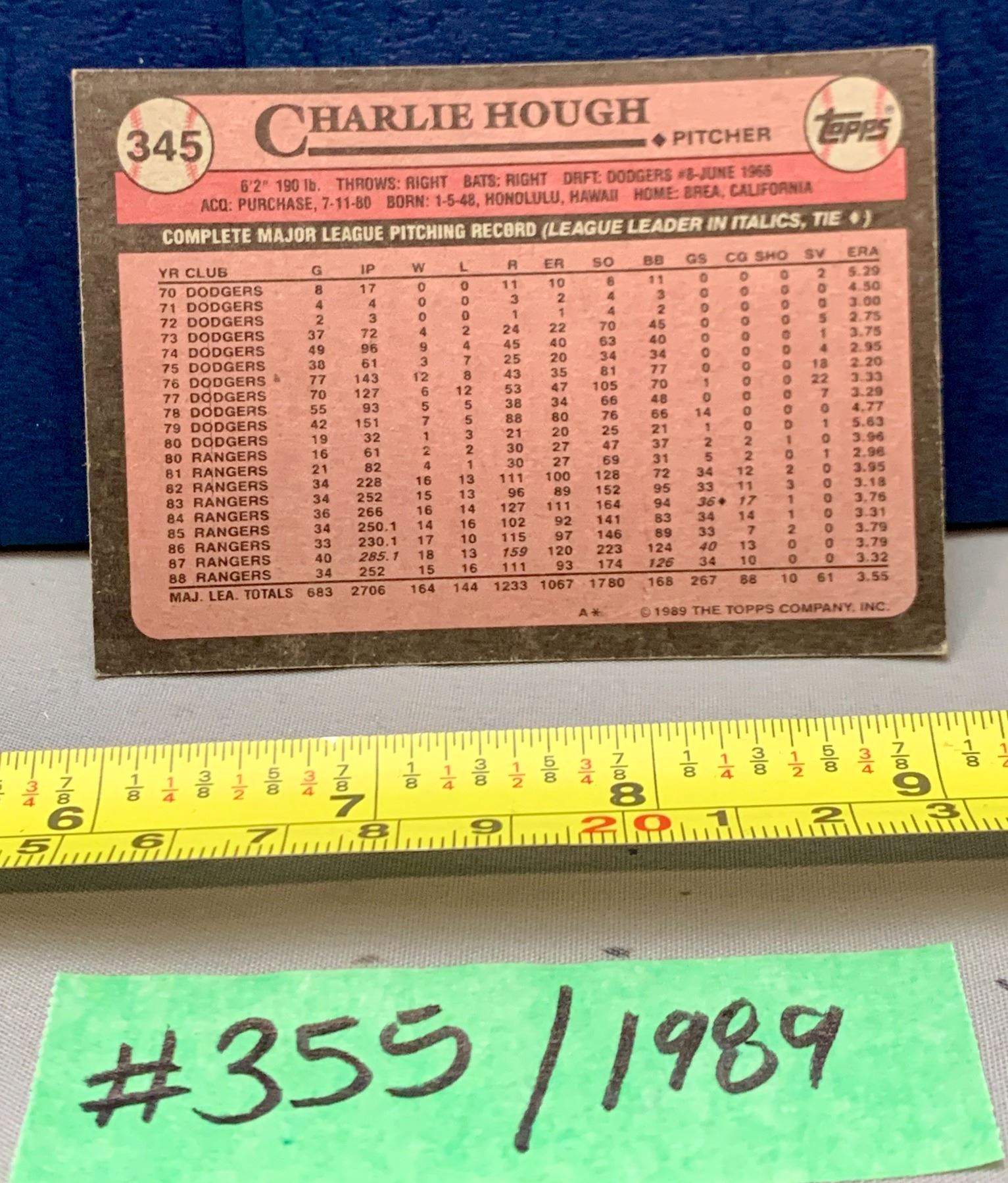 MLB Baseball Card - 1989 Vintage Charlie Hough