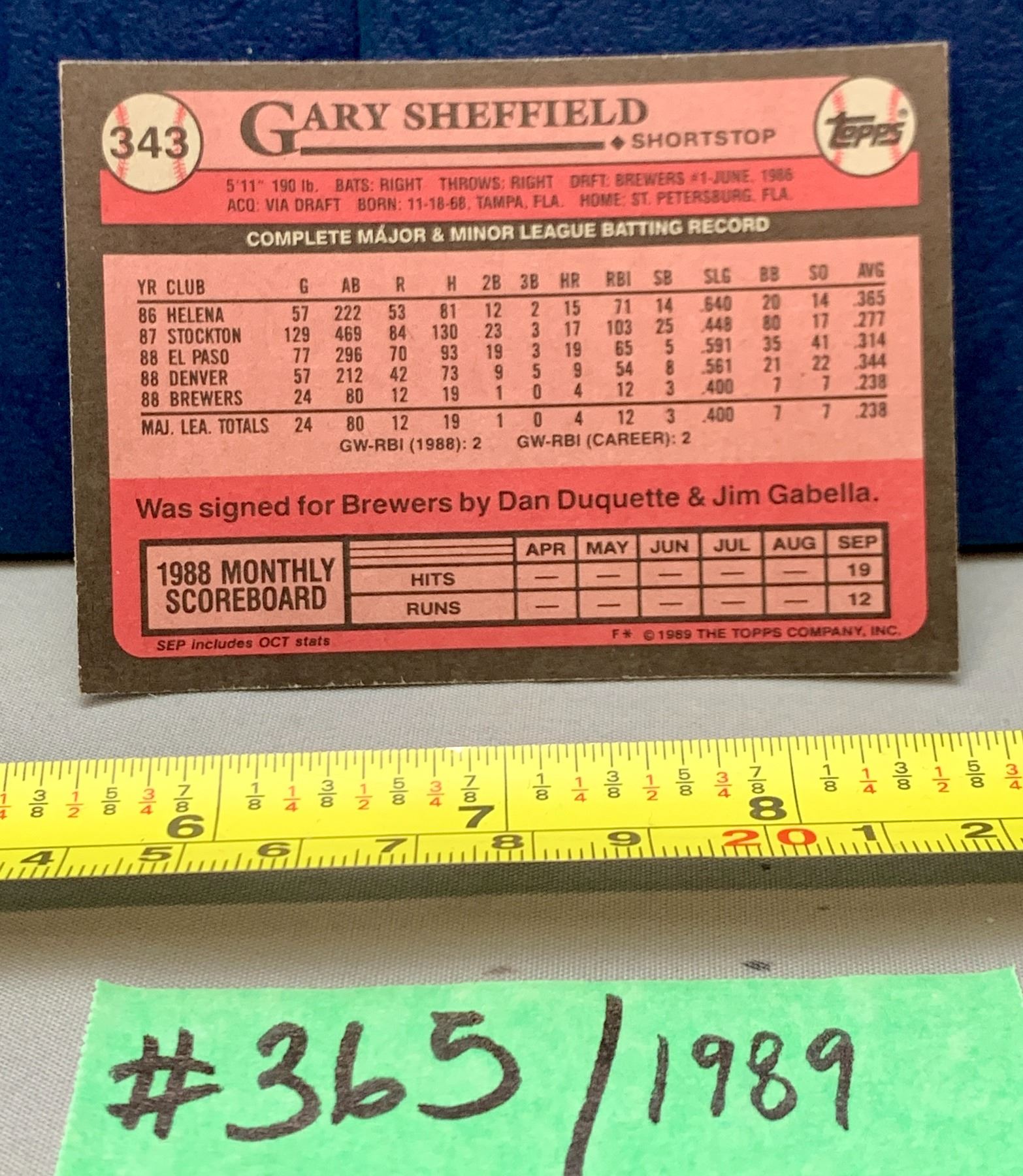 MLB Baseball Card - 1989 Vintage Gary Sheffield Rookie Card