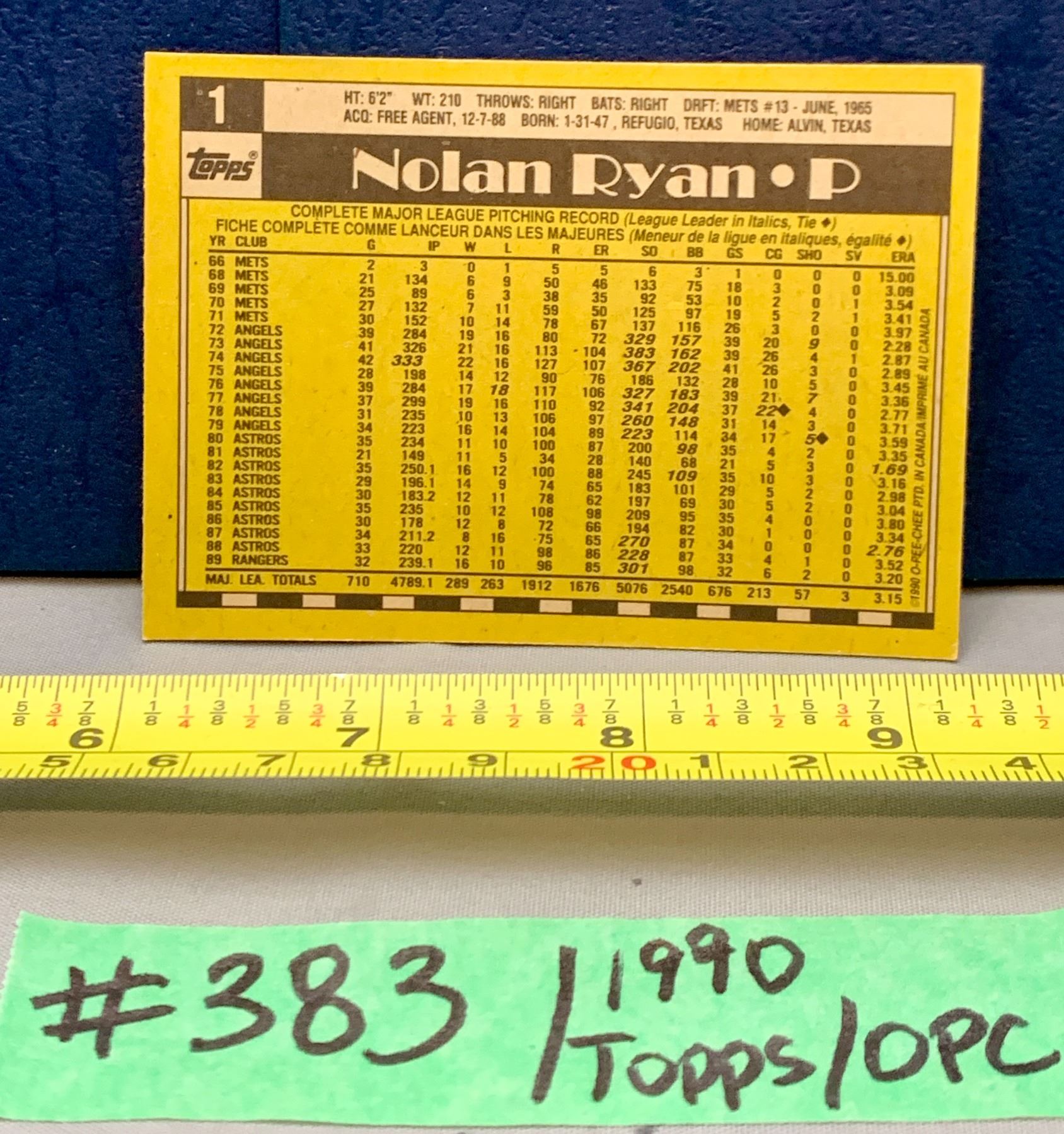 MLB Baseball Card - 1990 Topps / OPC Vintage Nolan Ryan