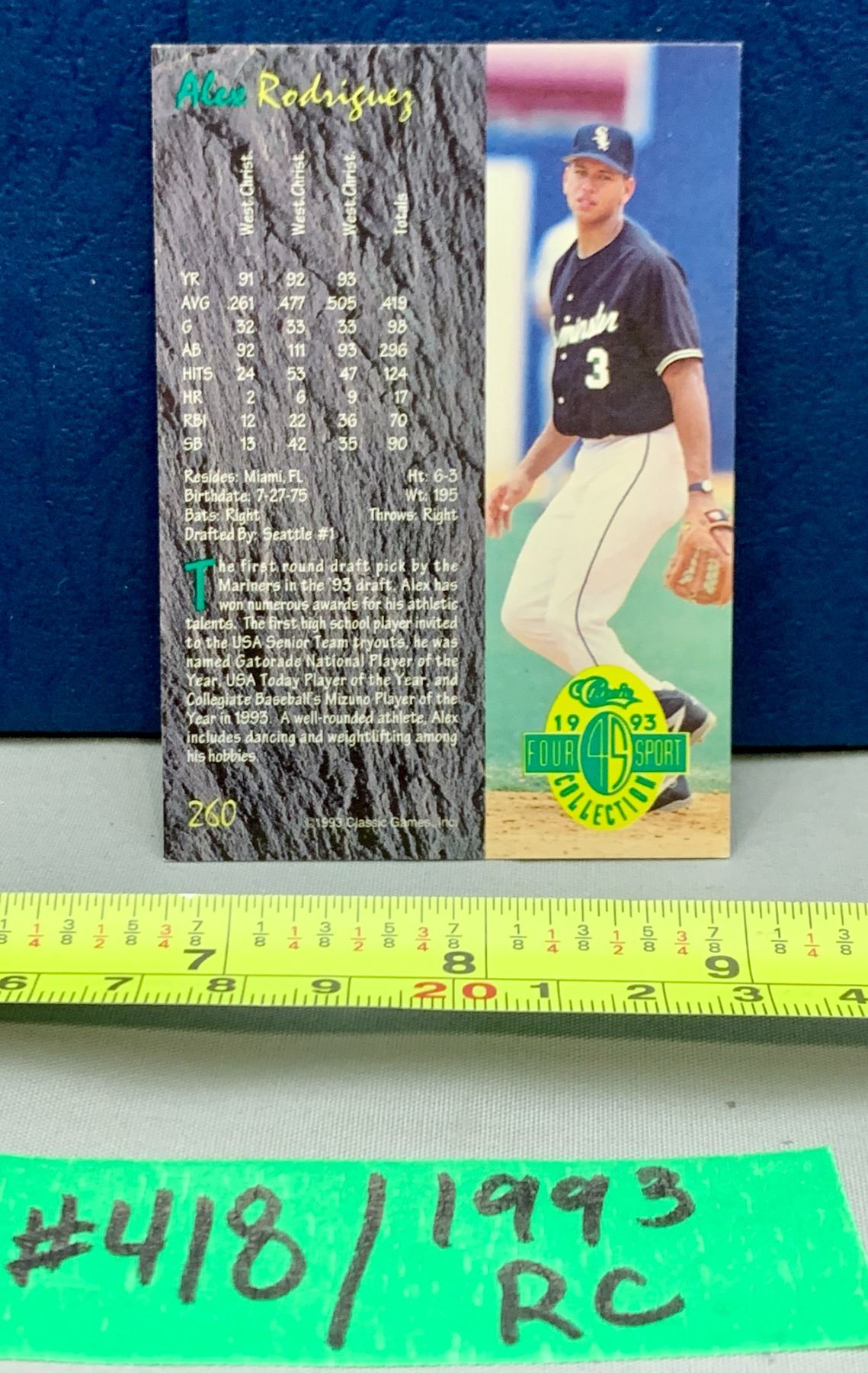 MLB Baseball Card - 1993 Rare A-Rod Alex Rodriguez Rookie Card