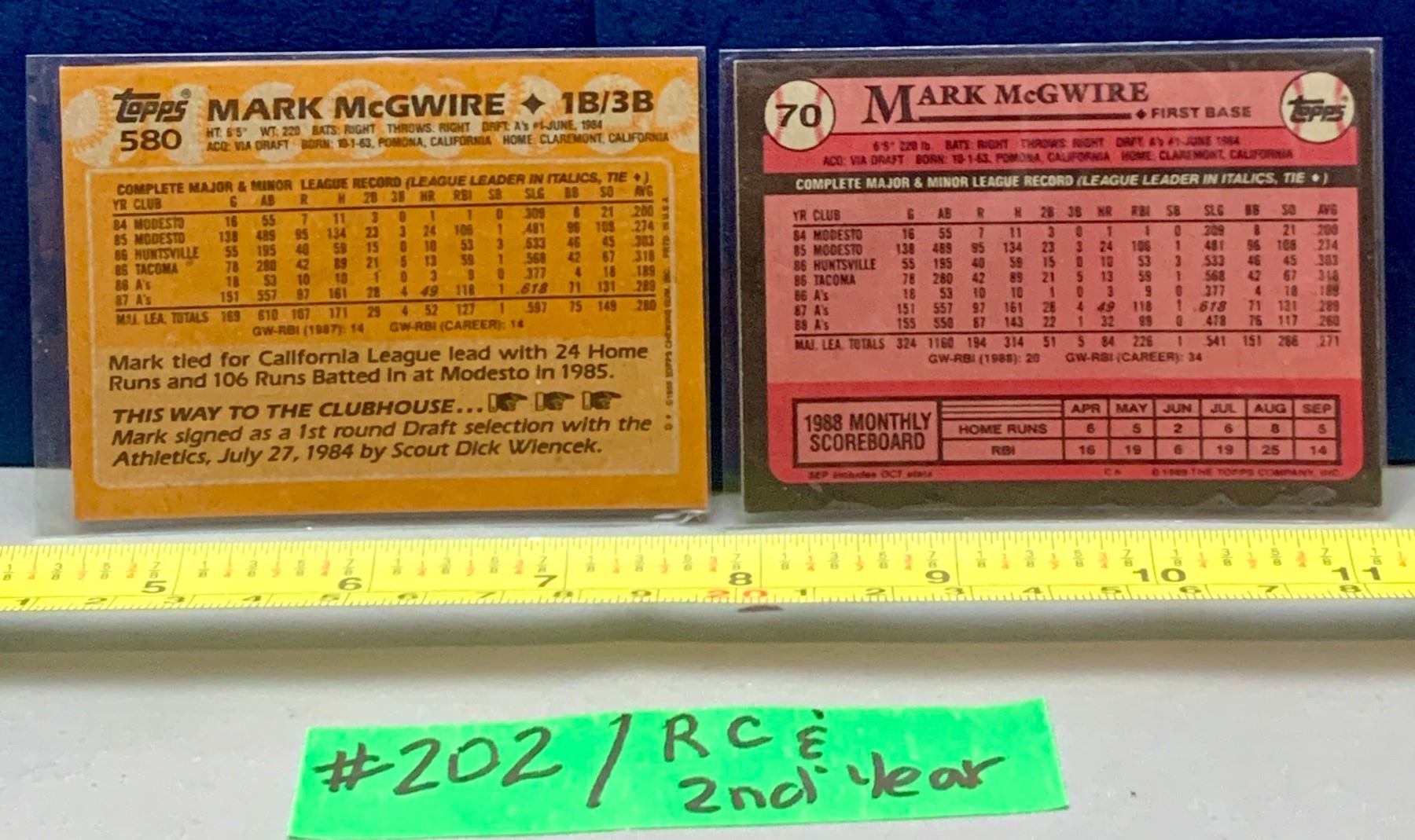 MLB Baseball Card - 2 x Vintage Mark McGuire Including Rookie Card