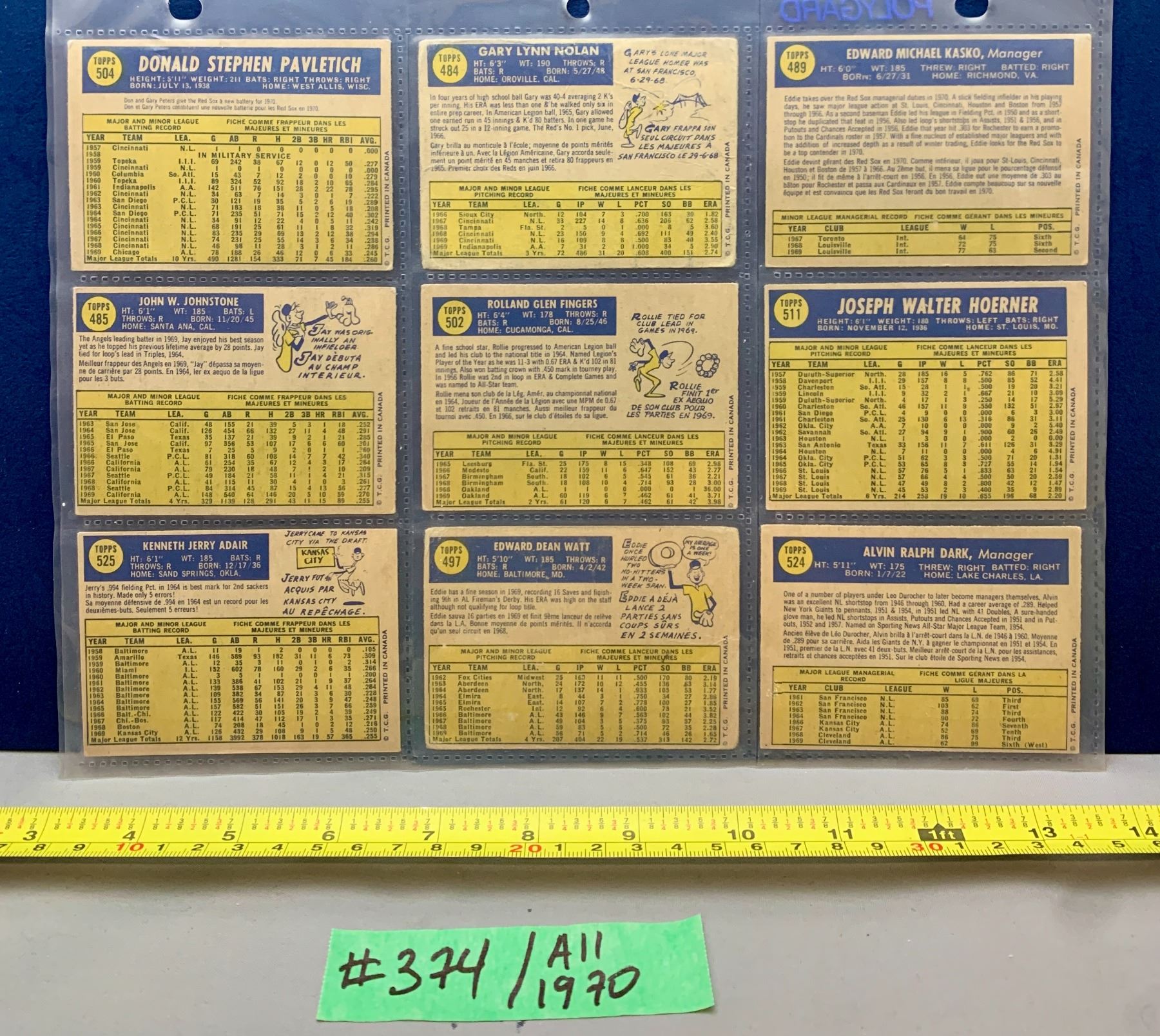 MLB Baseball Card - 9 x Vintage 1970 Baseball Cards