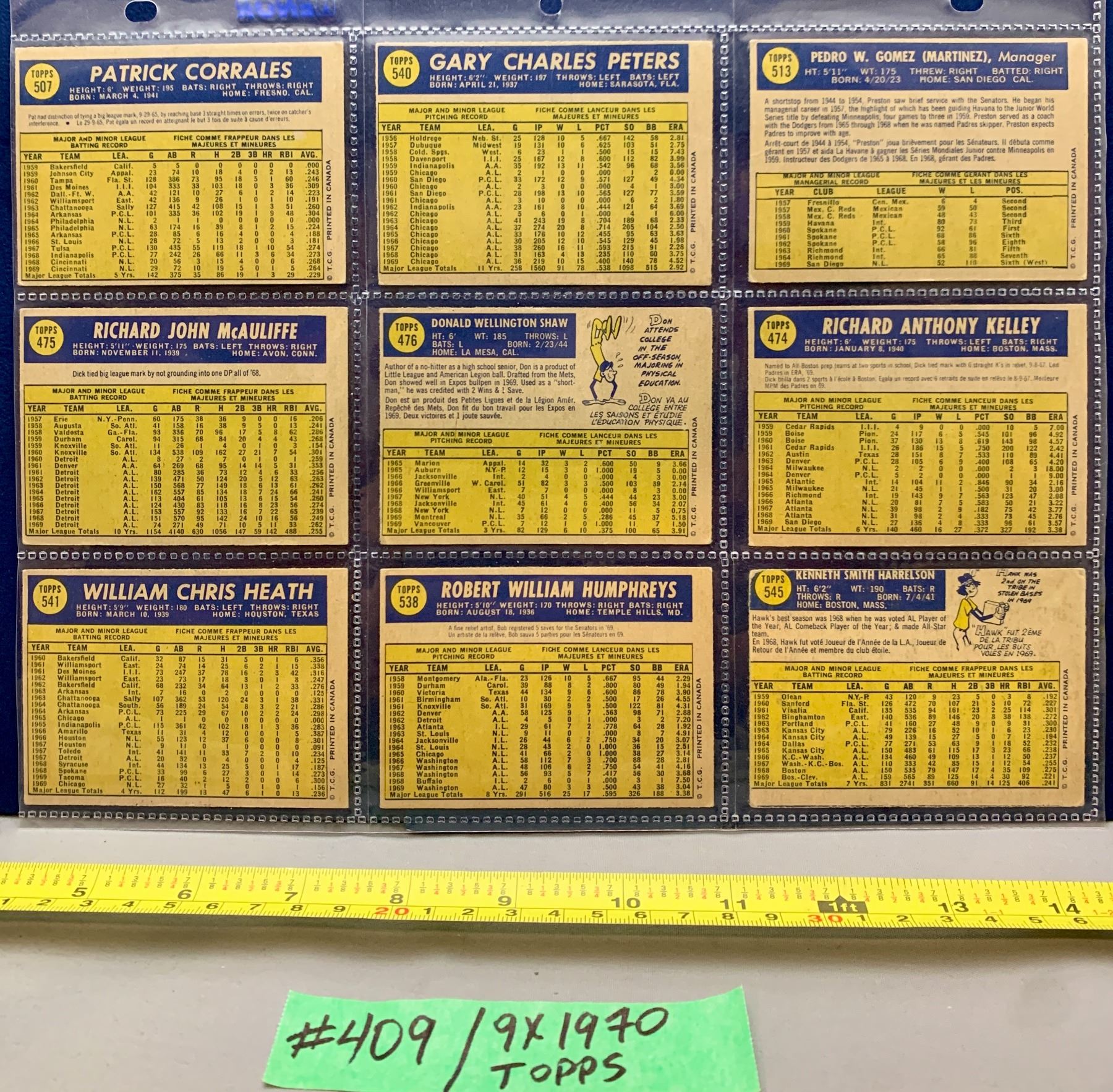 MLB Baseball Card - 9 x Vintage 1970 Baseball Cards