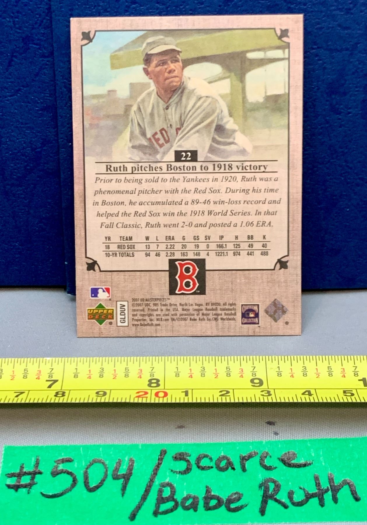 MLB Baseball Card - Babe Ruth Rare Upper Deck Masterpeices Card