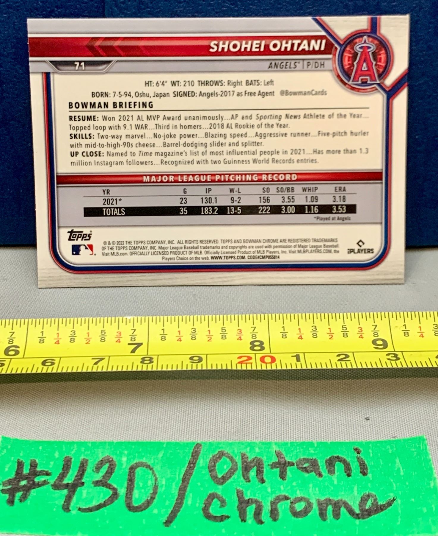 MLB Baseball Card - Shohei Ohtani 2022 Bowman Chrome Card! Rare!