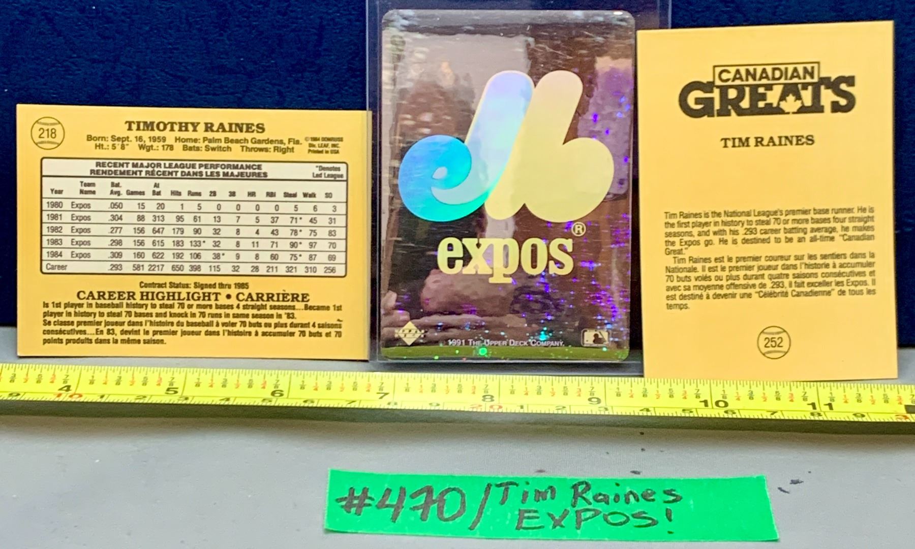 MLB Baseball Card - Tim Raines Montreal expos / Canadian Gretas!