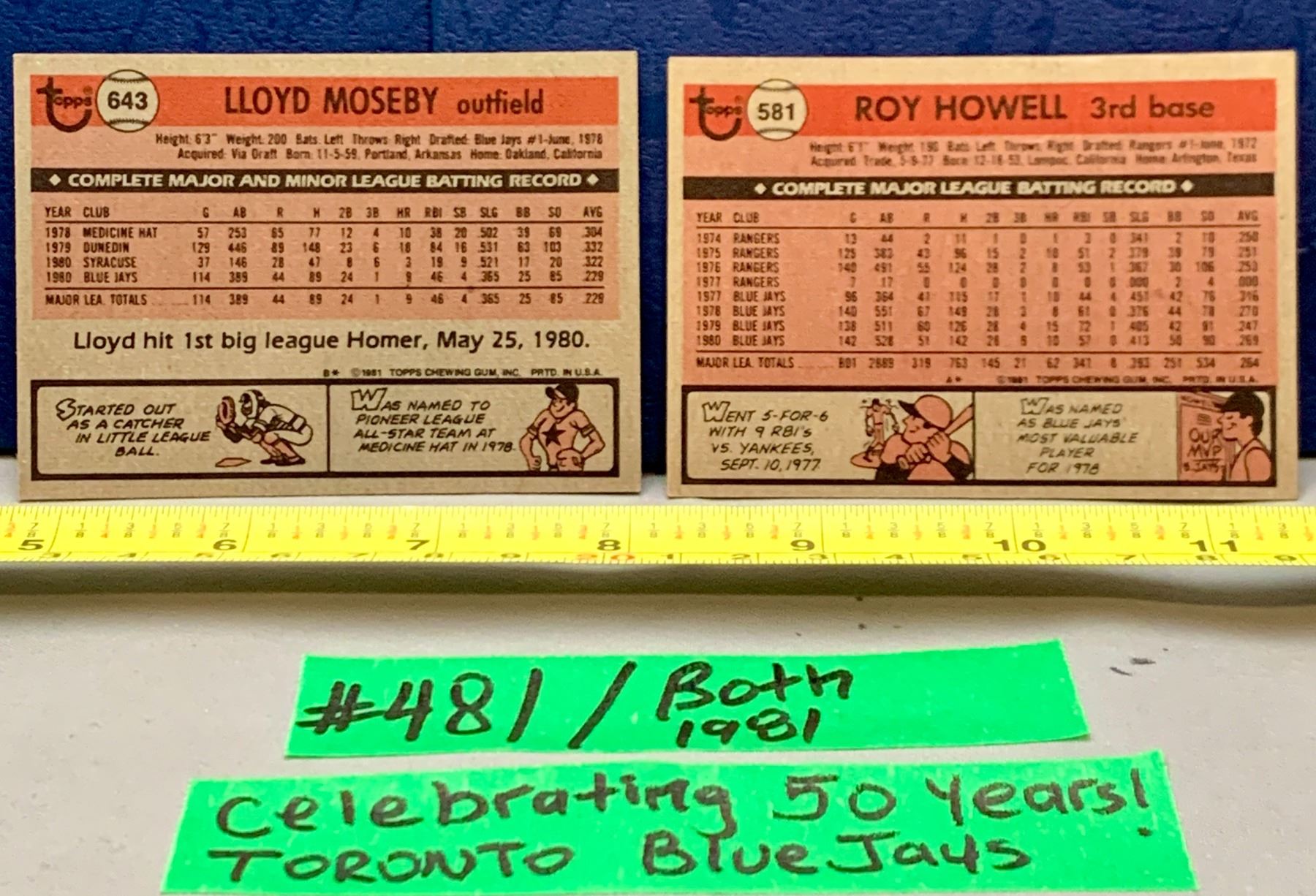 MLB Baseball Card - Toronto Blue Jays 1981 Lloyd Moseby & Roy Howell