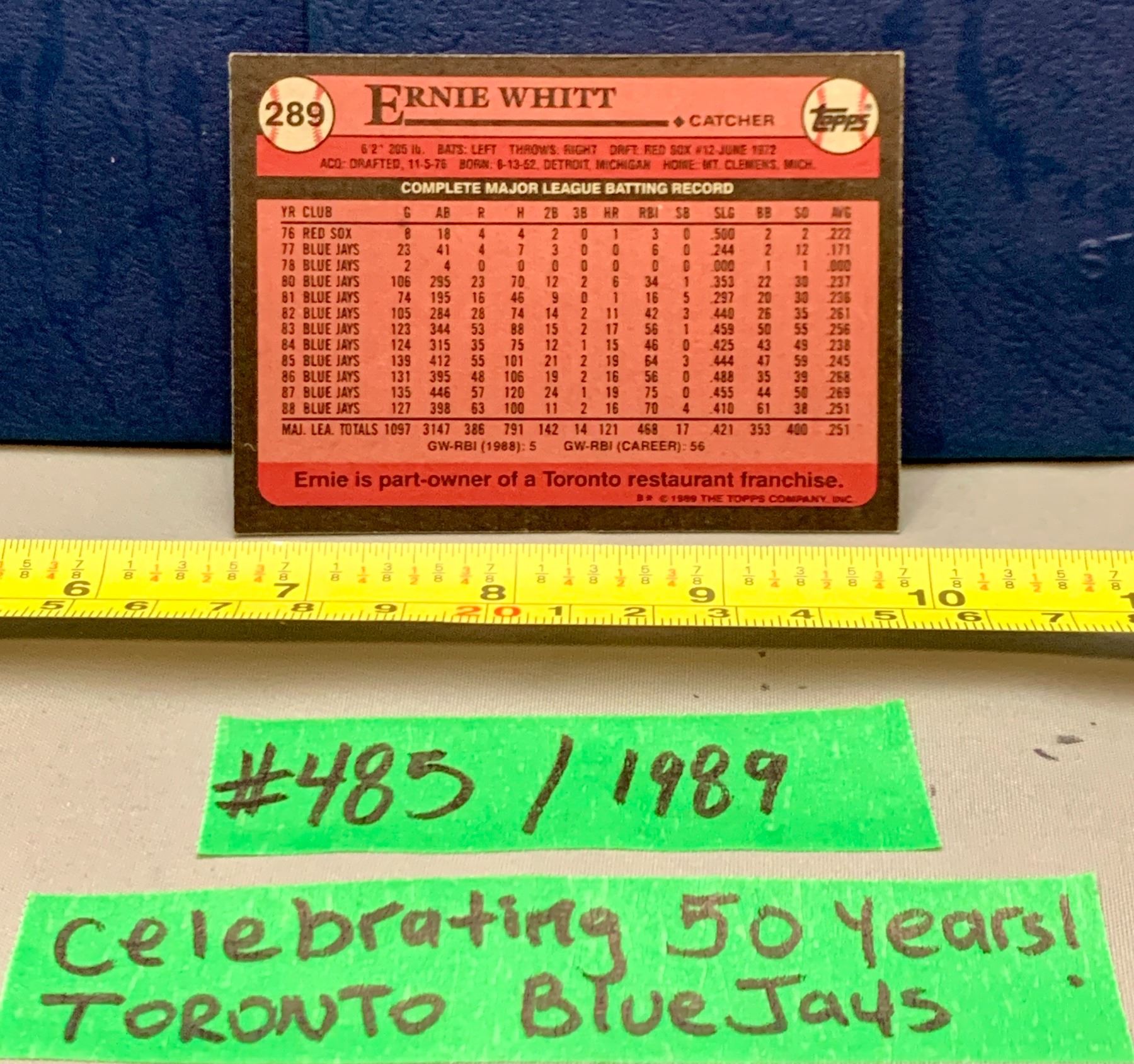 MLB Baseball Card - Toronto Blue Jays 1989 Ernie Whitt