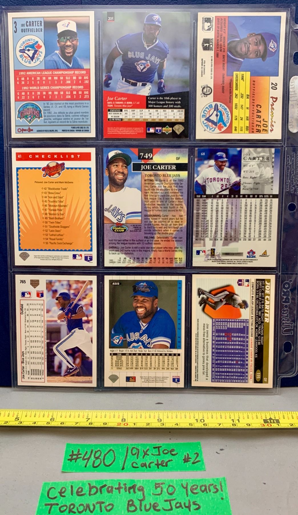 MLB Baseball Card - Toronto Blue Jays 9 x Joe Carter Sheet #2