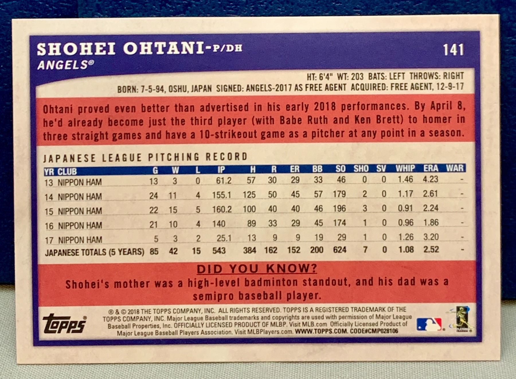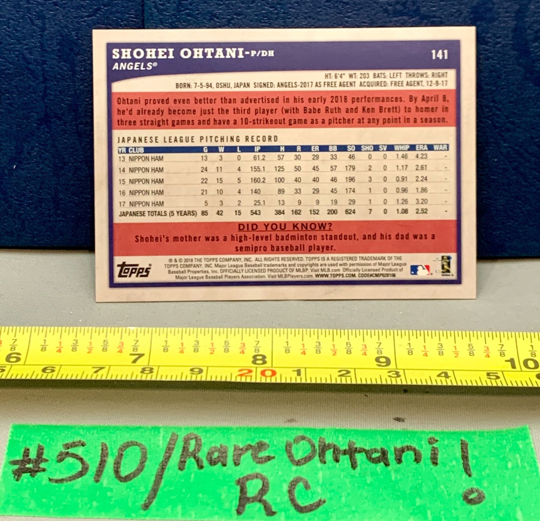 MLB Baseball Card - Ultra Rare Highly Sought After 2018 Shohei Ohtani Rookie Card!