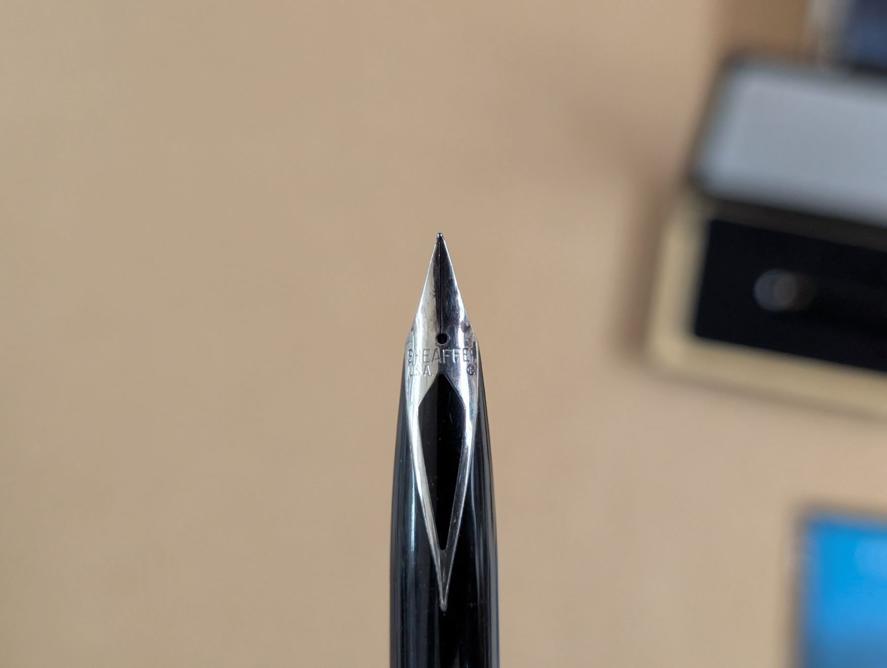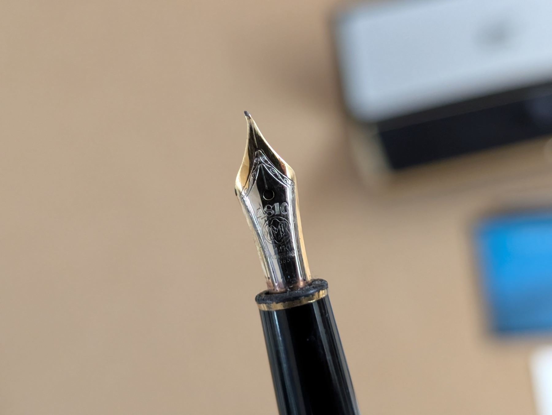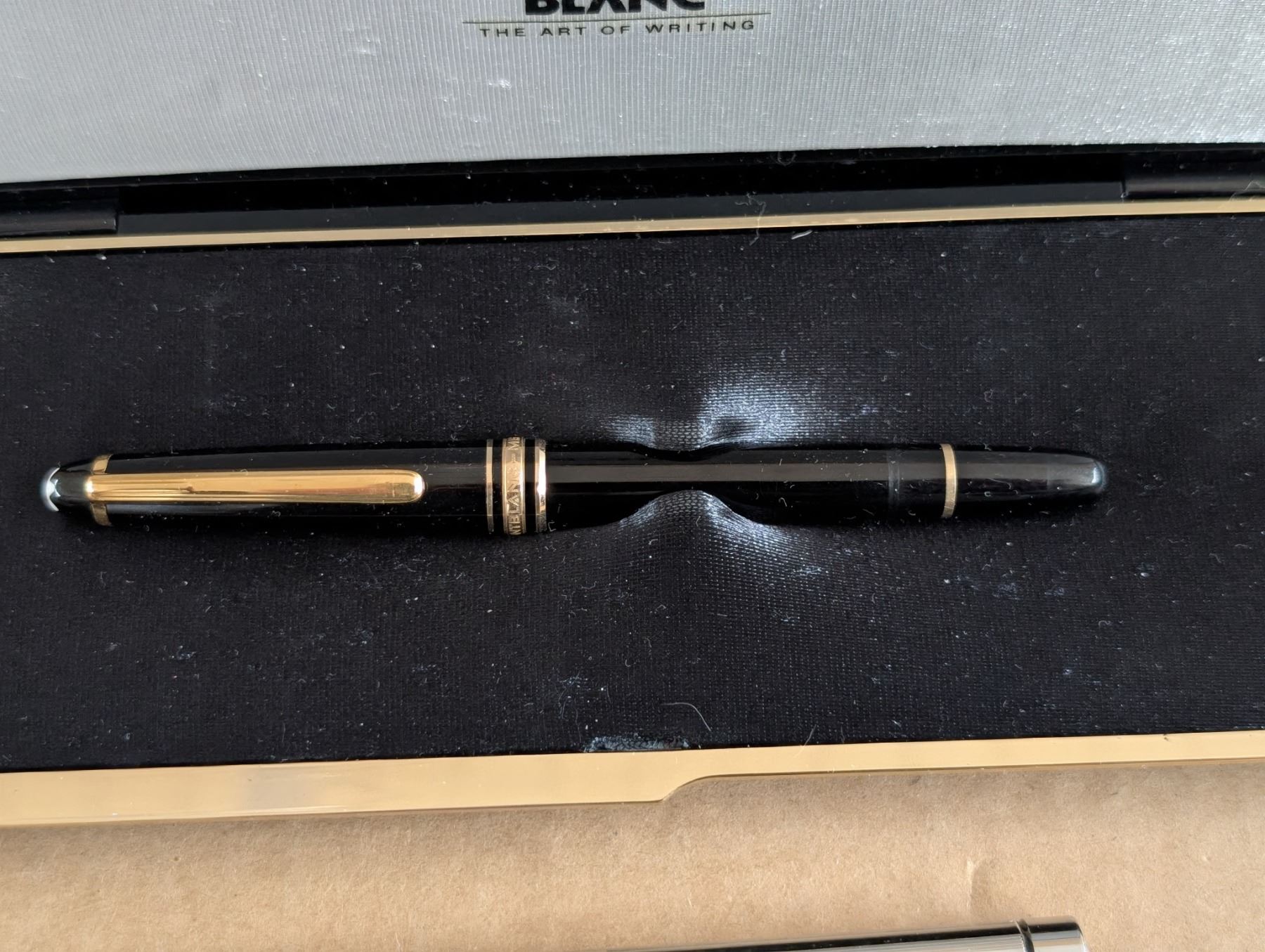 MONT BLANC Fountain Pen with International Service Certificate, made in Hamburg, Germany. Plus SHEAFER silver coloured Fountain Pen, made in USA. Plus one Mont Blanc bottle of black ink, sealed, never opened, in package, plus 1 bottle hardly used ink; made in Germany.