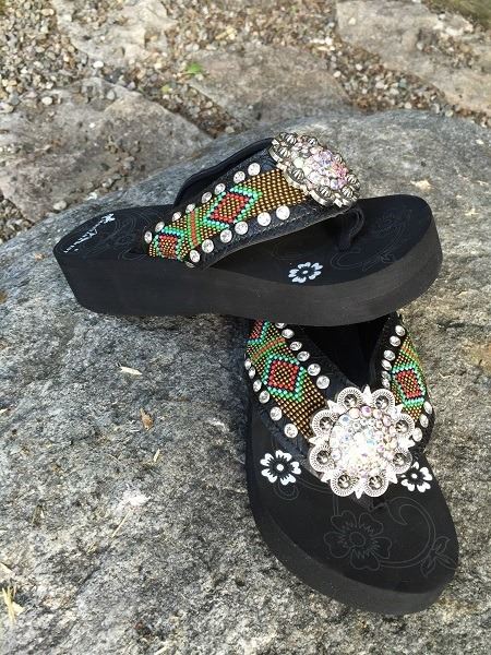 MONTANA WEST RED/TURQOISE BEADED FLIP FLOPS/SIZE 6