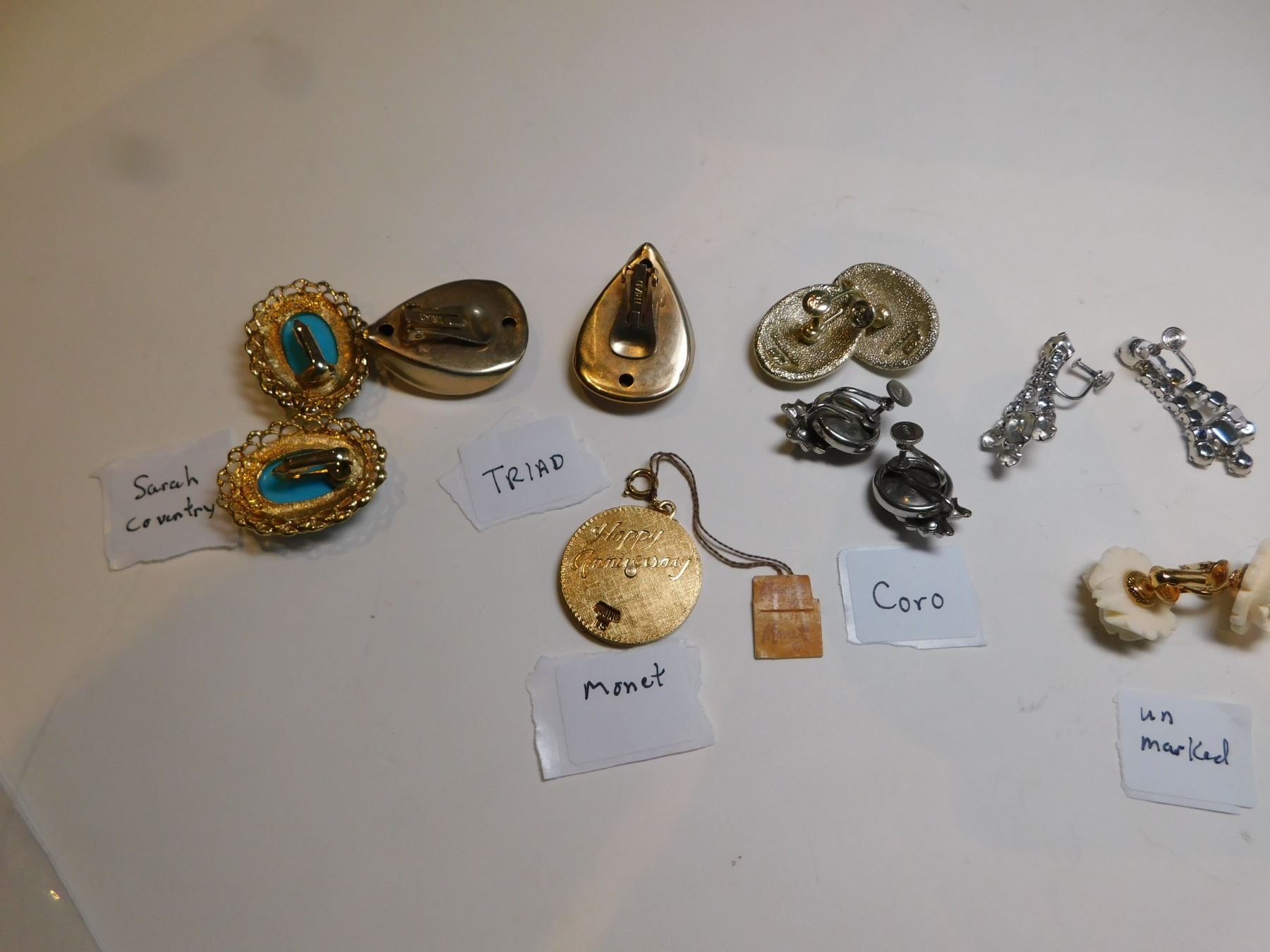 MOSTLY MARKED COSTUME JEWELLRY EARINGS AND MONET PENDANT