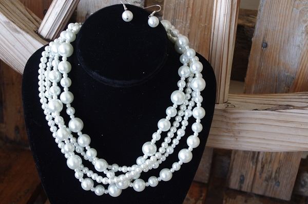 MULTISTRAND WHITE PEARL NECKLACE/ADJUSTABLE CLASP CLOSURE