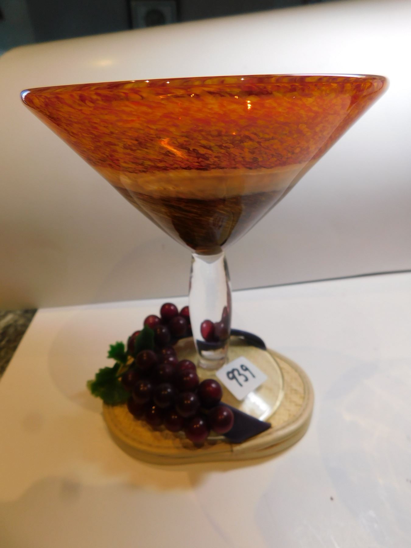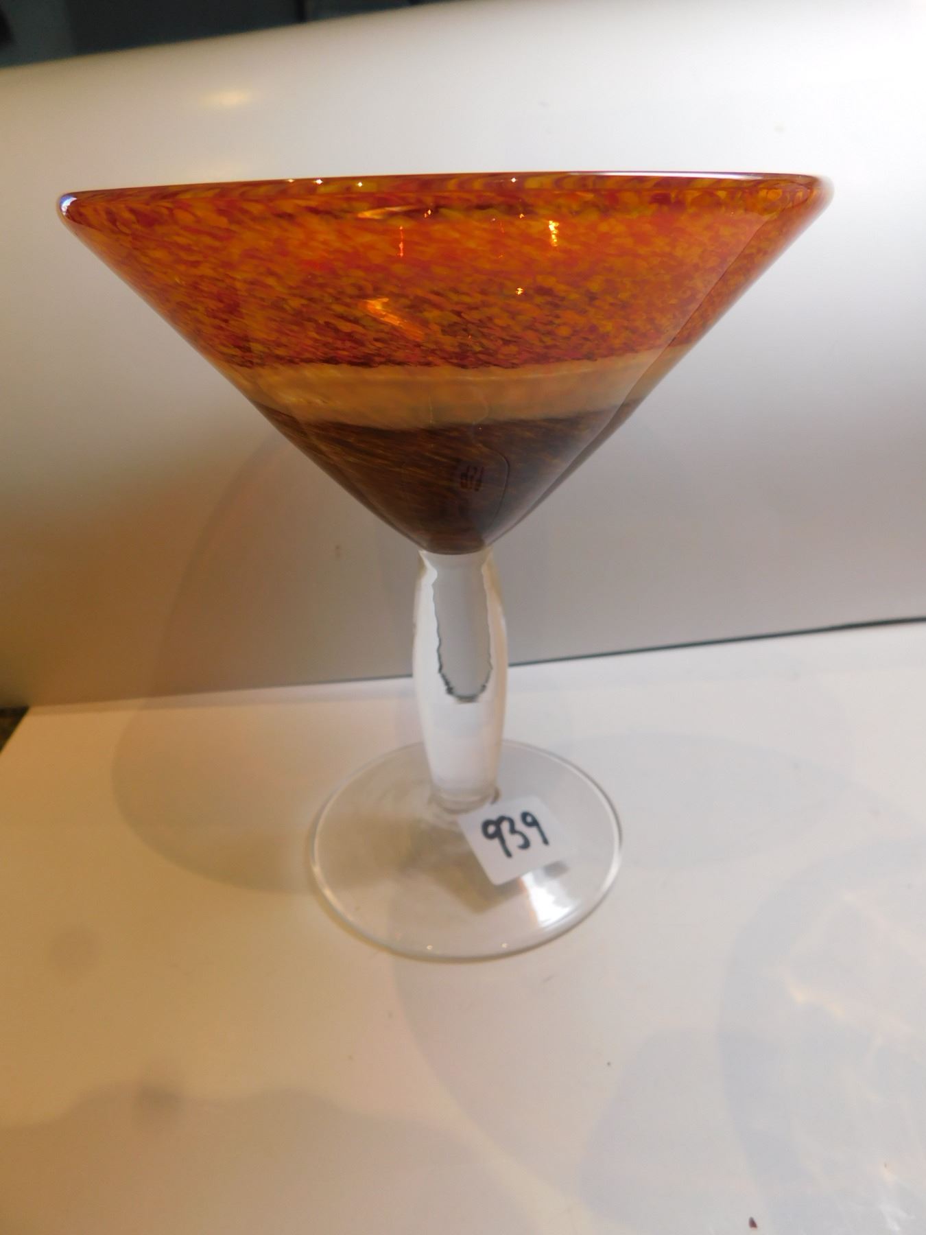 MURANO GLASS ORANGE BROWN AND SPECKLED MARTINI GLASS AND SHOE COASTER