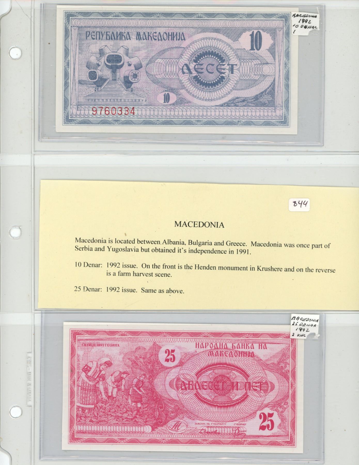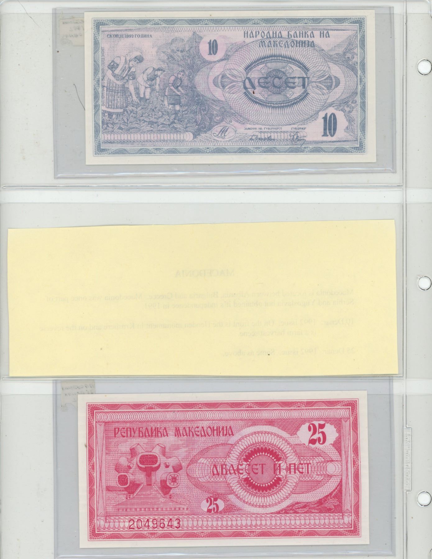 Macedonia. Lot of 2 notes: 1992 10 Denar P-1 and 1992 25 Denar P-2. The first notes issued by this newly formed republic. Both Unc.