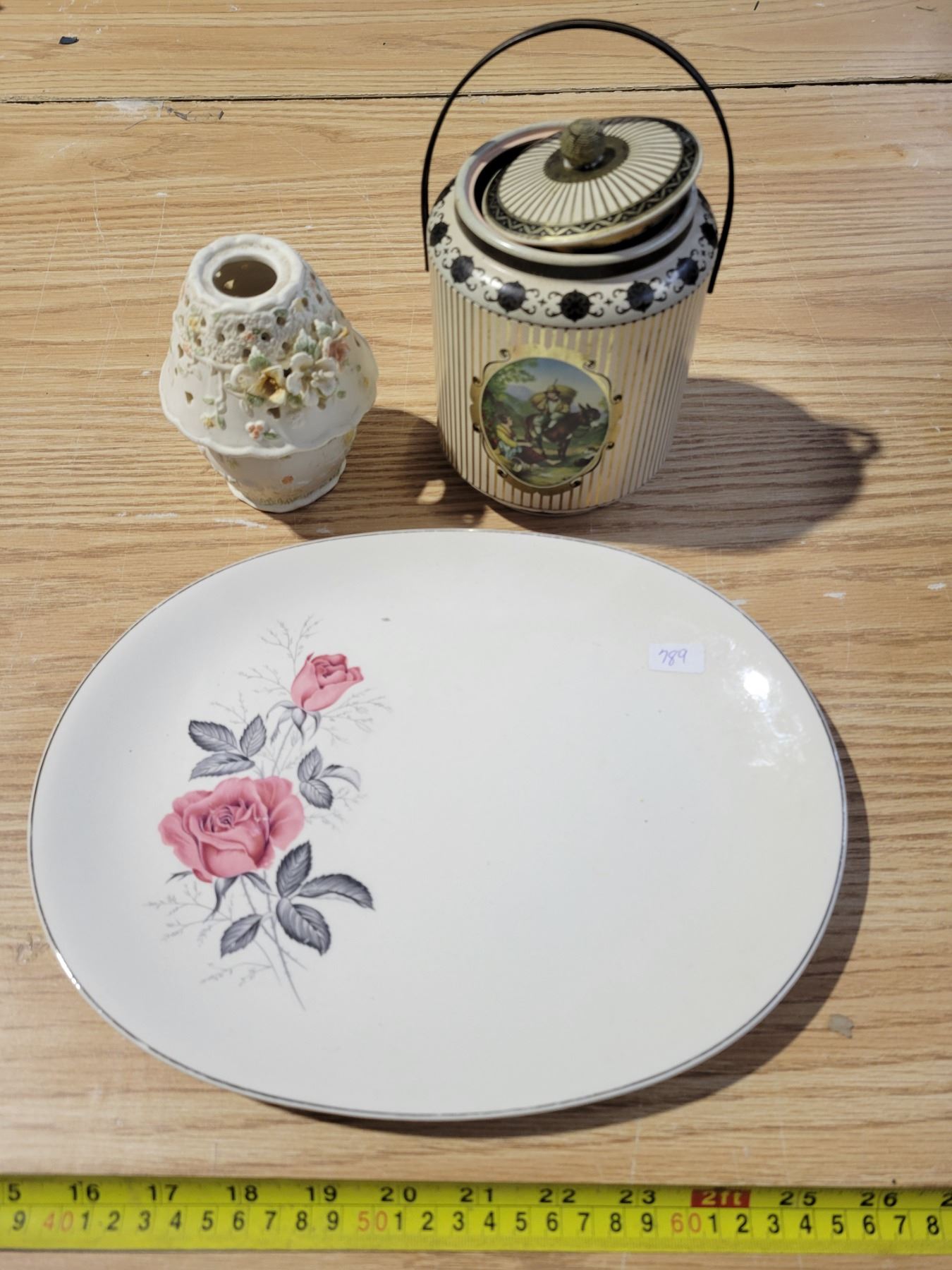 Made in England Johnston Bros serving platter & tin, flower tealight holder