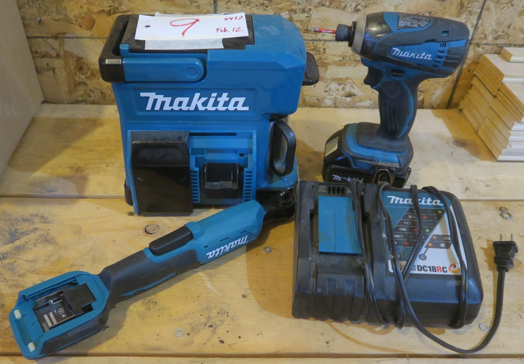 Makita lot - Battery Charger, 3/8" Electric Ratchet, Drill, Coffee Maker