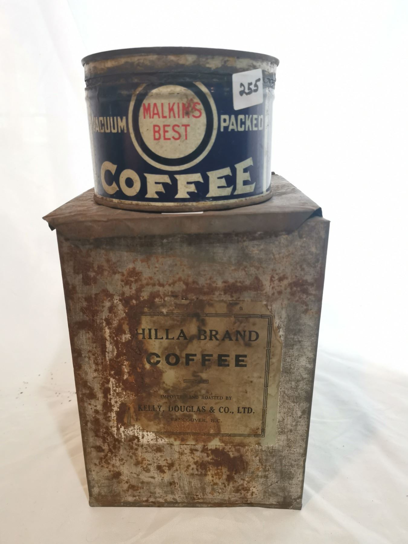 Malkin's & Hilla 5 lb coffee tin can