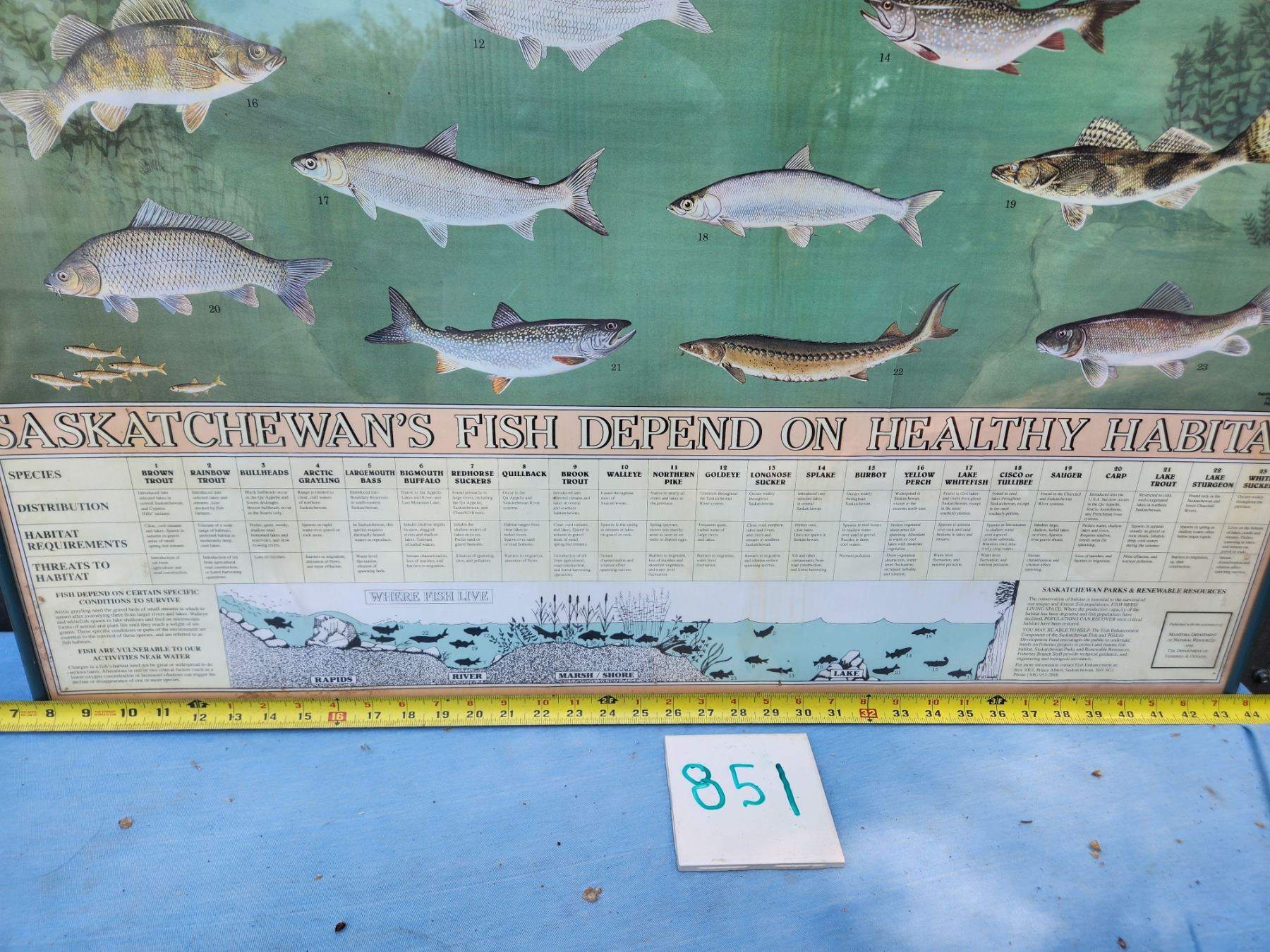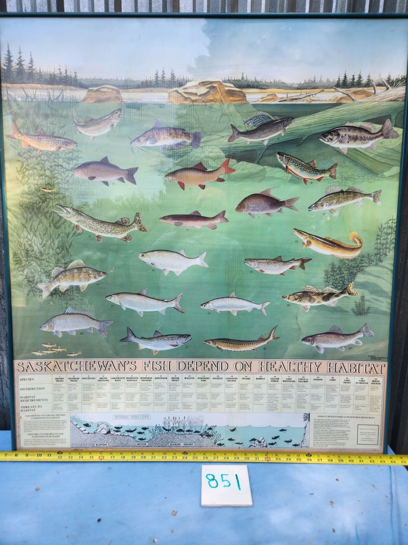 Mancave poster! Framed "Fish Species of Saskatchewan." Measeures 36 inches by 40 inches