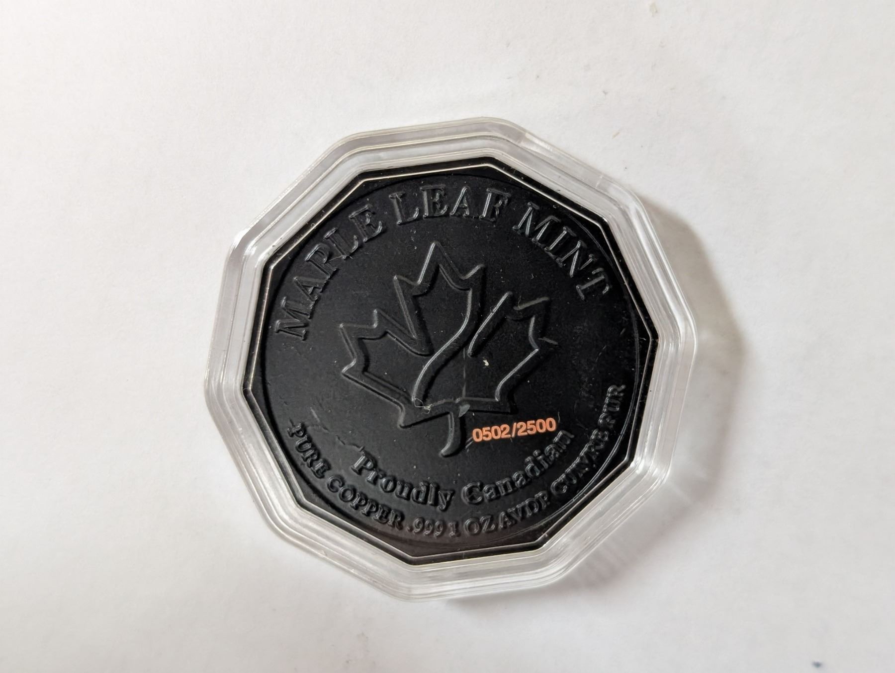 Maple Leaf Mint Proudly Canadian Pure Copper .999 1 oz AVDP Cutvre Pur Bee Design 0502/2500
