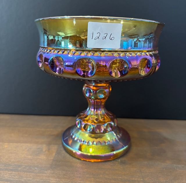 Marigold Carnival Glass “Kings Crown“ Thumbprint Compote