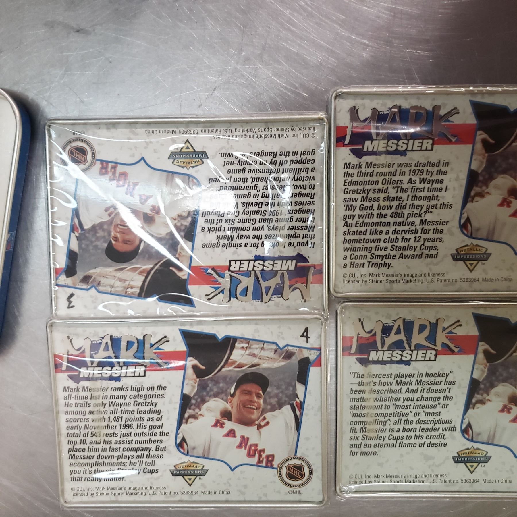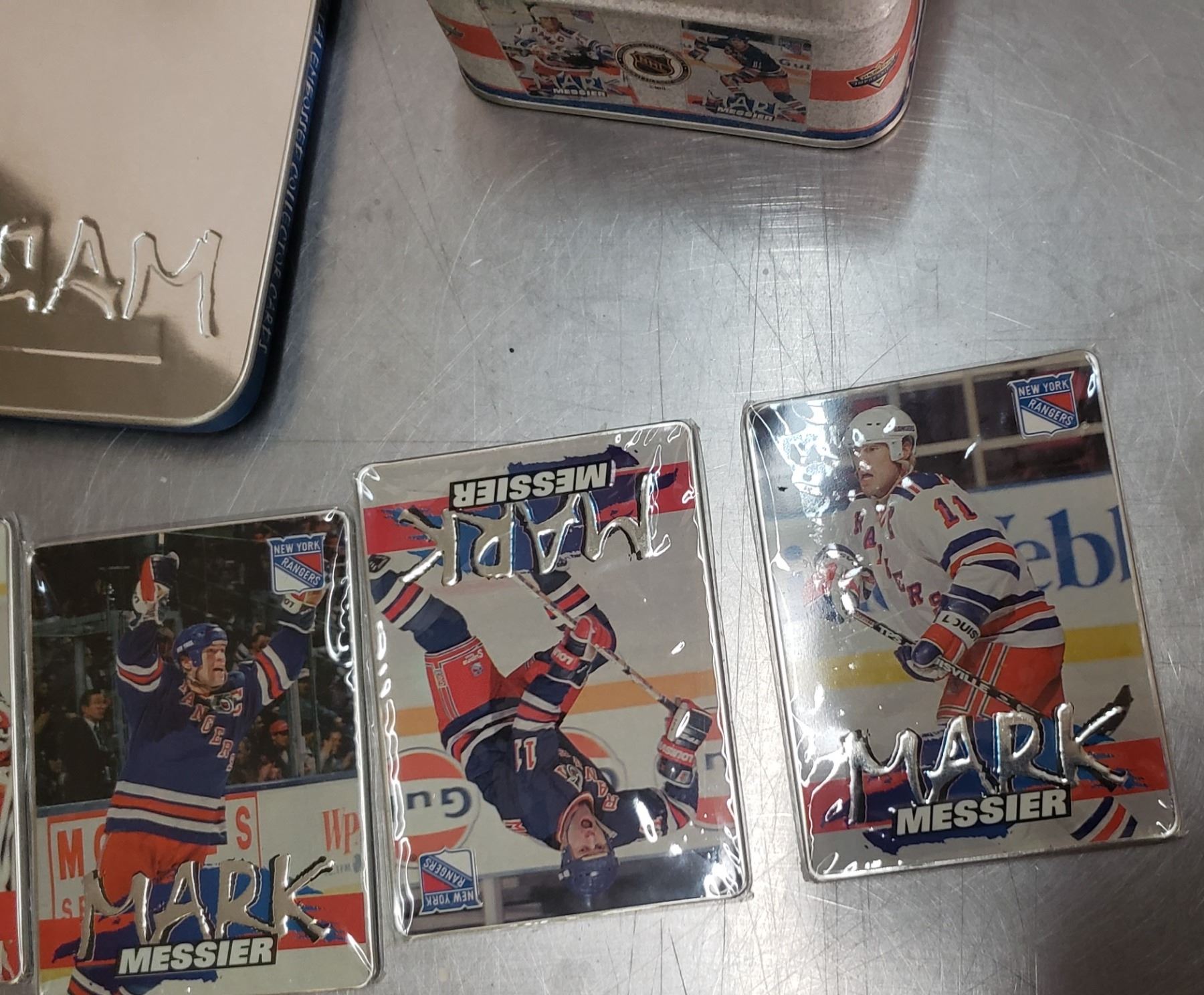Mark Messier metal cards still sealed in plastic in origanl Can