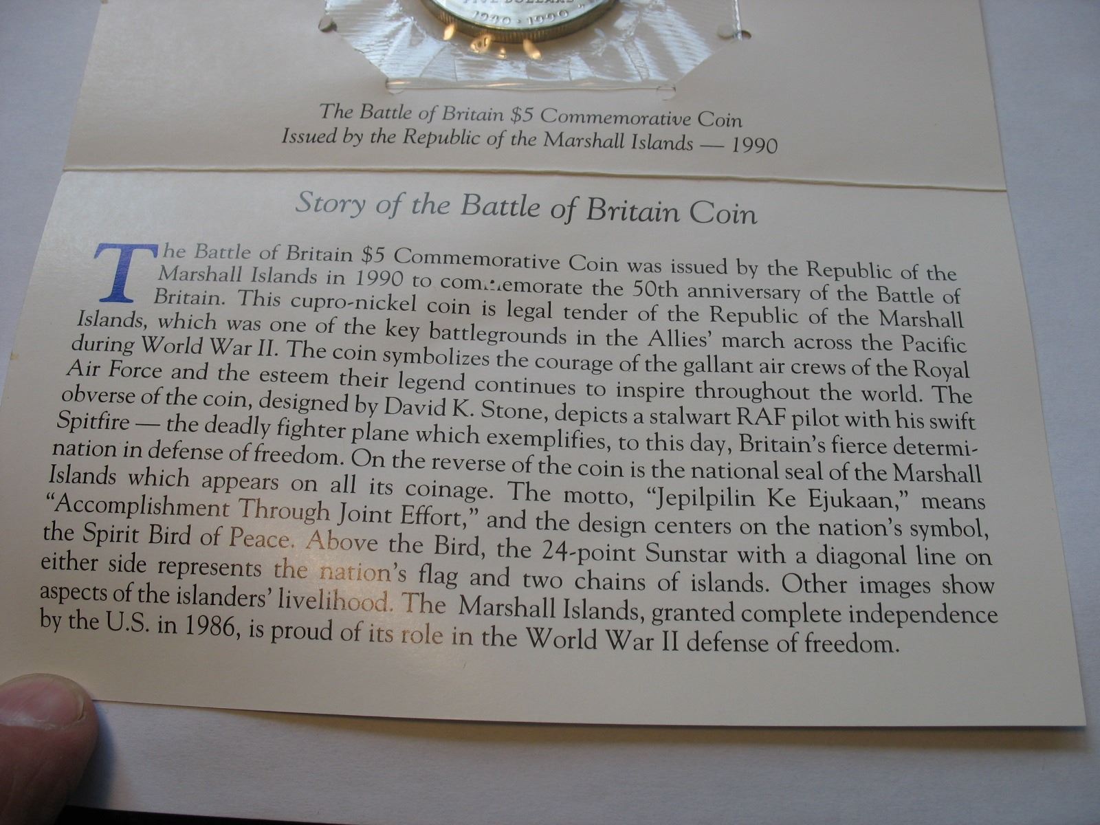Marshall Islands - 1990 $5.00 Coin - Battle of Britain