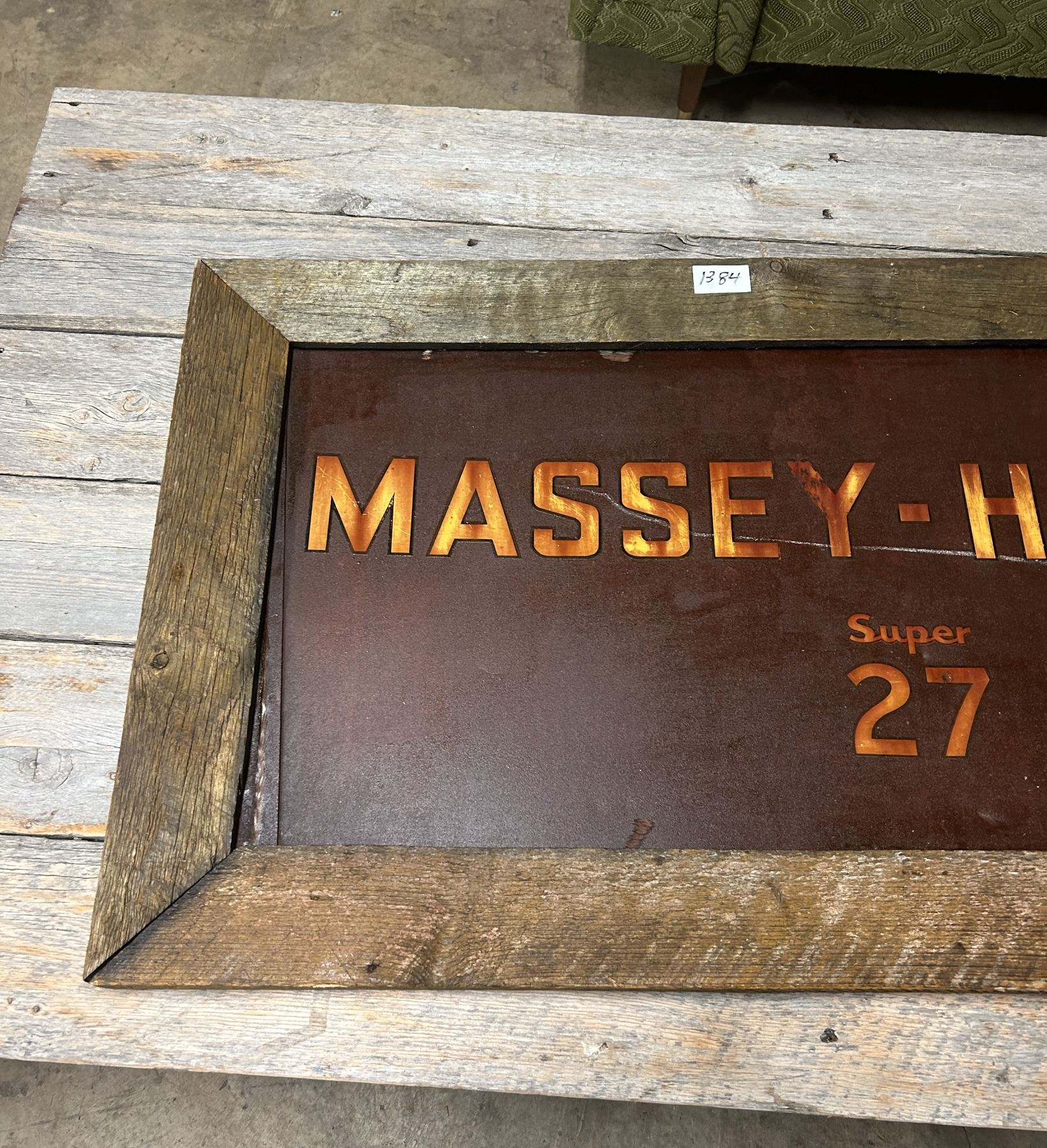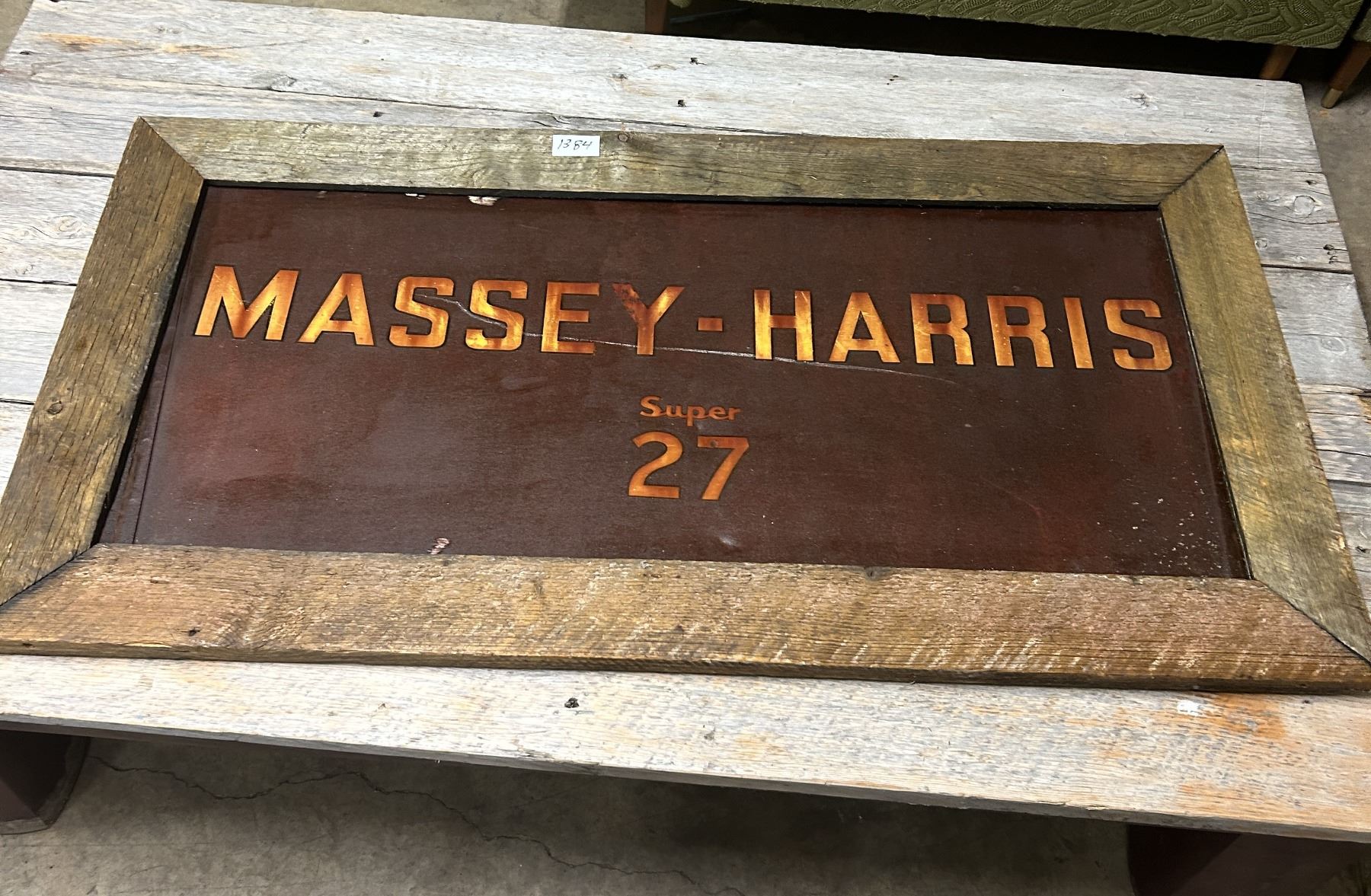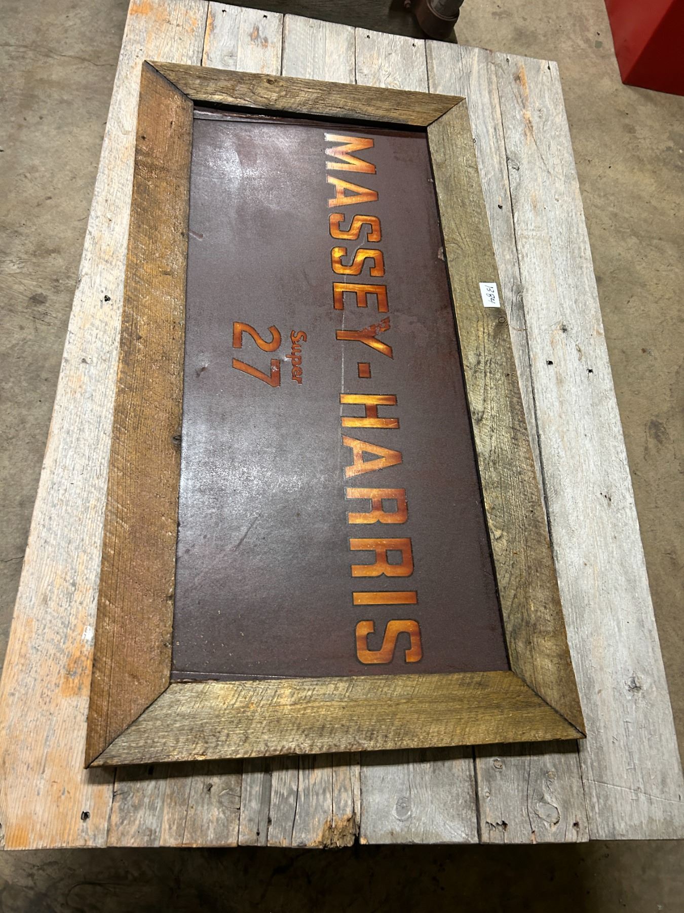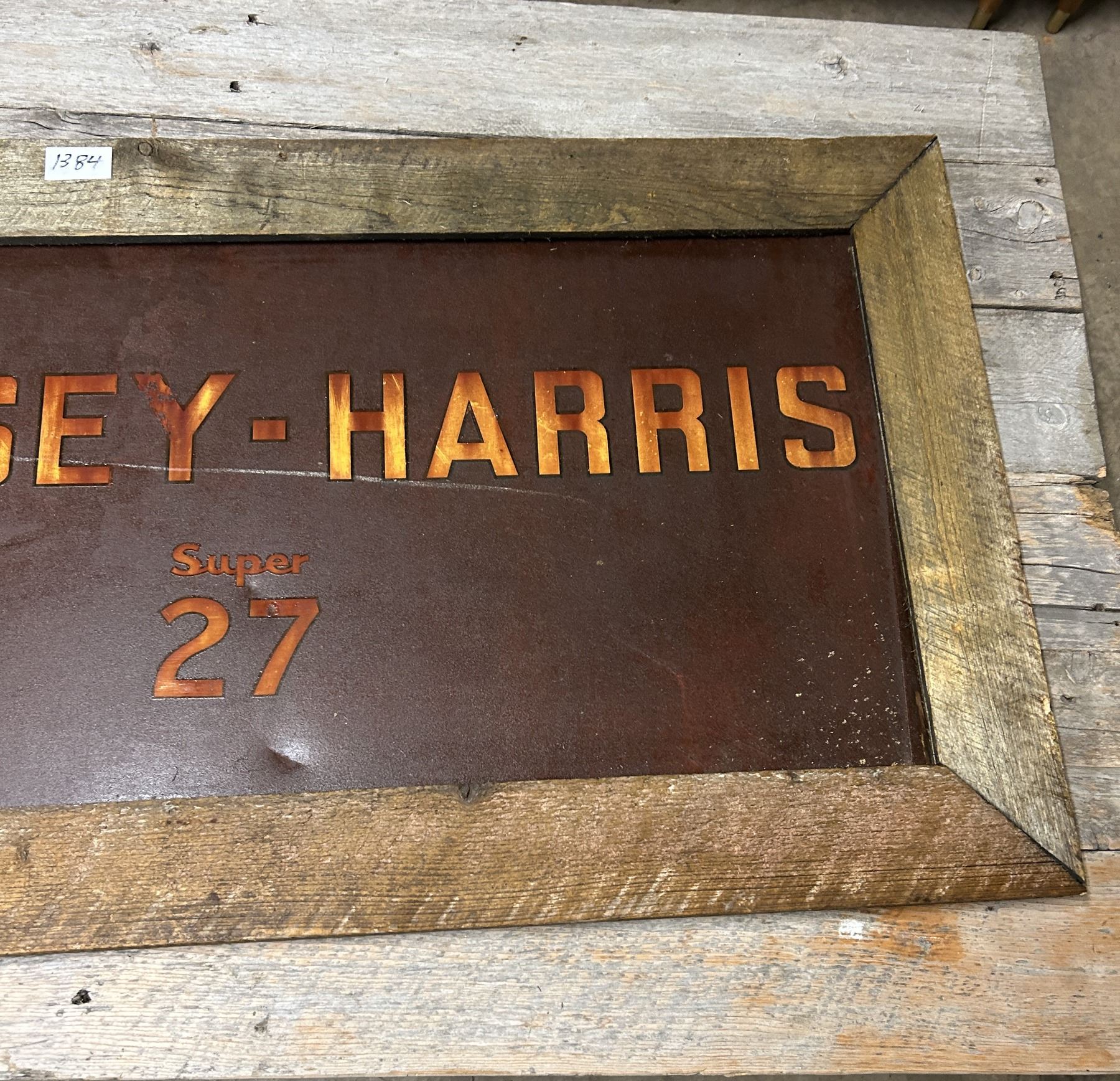 Massey Harris #27 combine sign - 46"x24" Tin in wooden frame