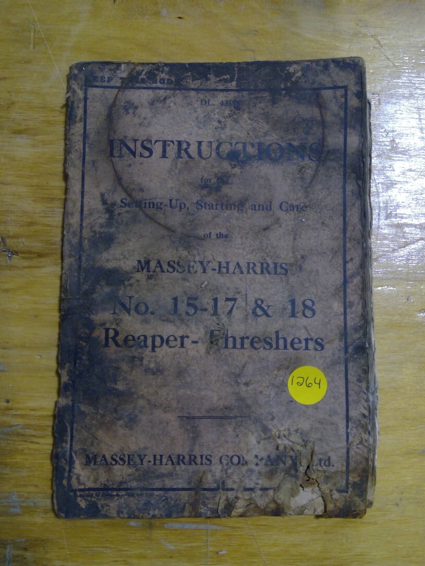 Massey-Harris No.15-17 and 18, Reaper-Threshers Setting Up, Starting and Care Instructions