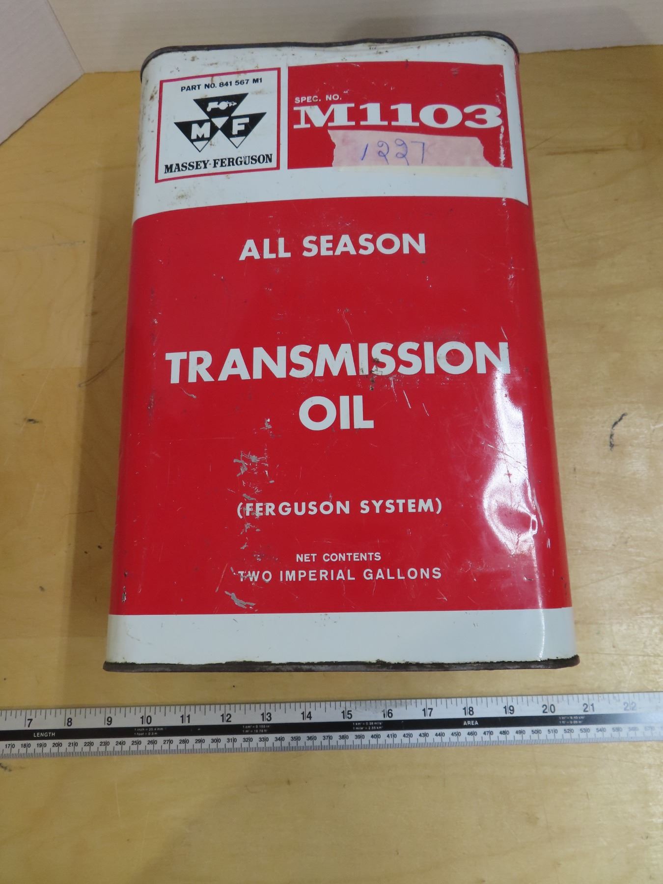 Massey- forguson M1103 transmission oil can- two imperial gallons
