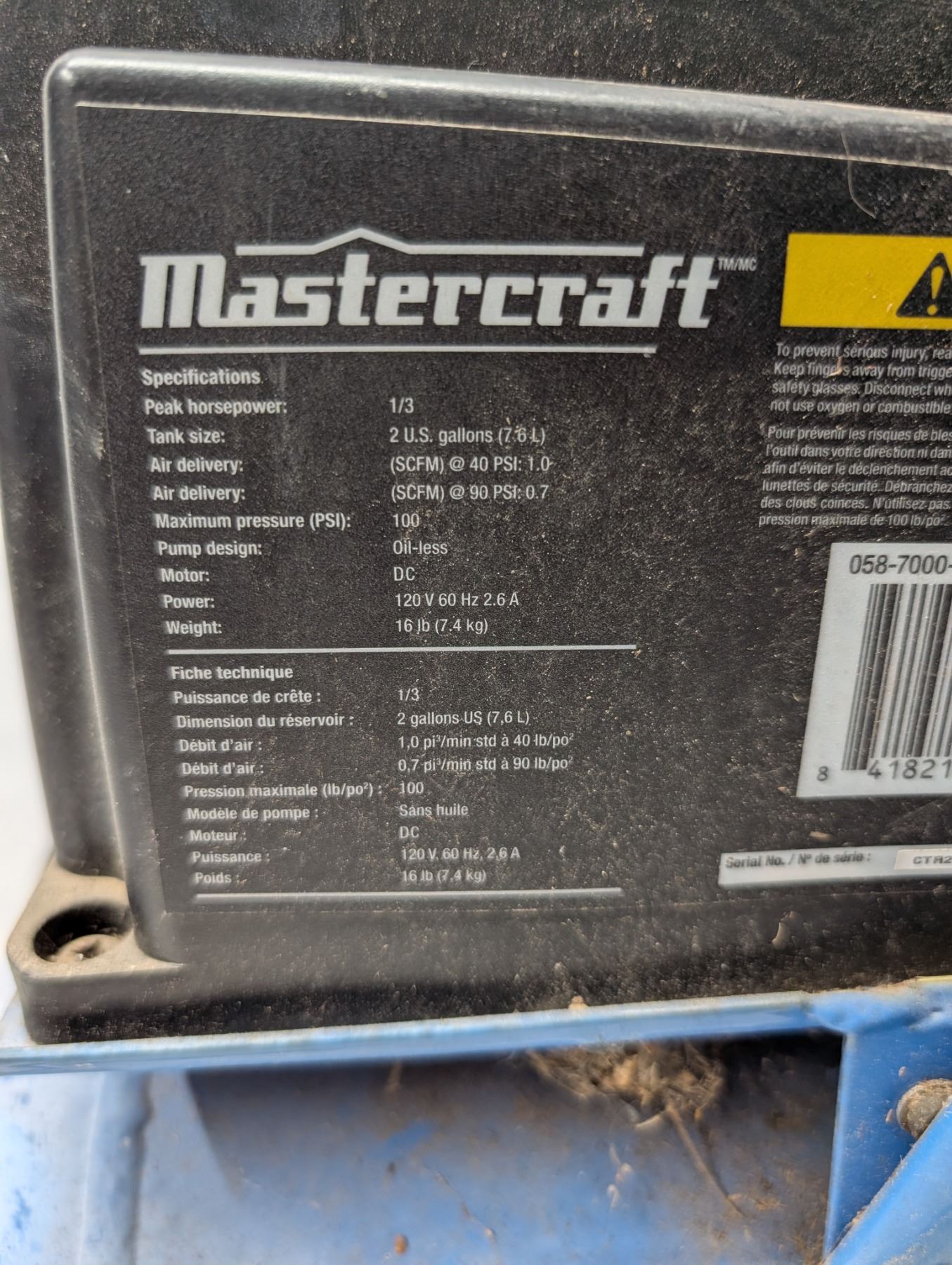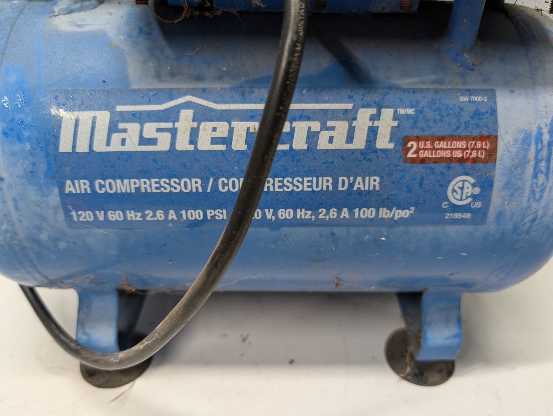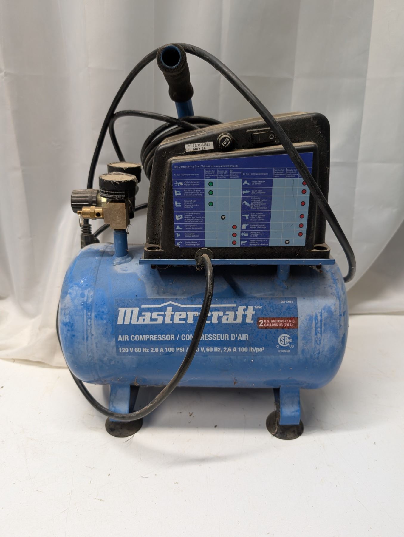 Master Craft 2 Gal. 120v Air Compressor w/ Nozzle (not Tested)