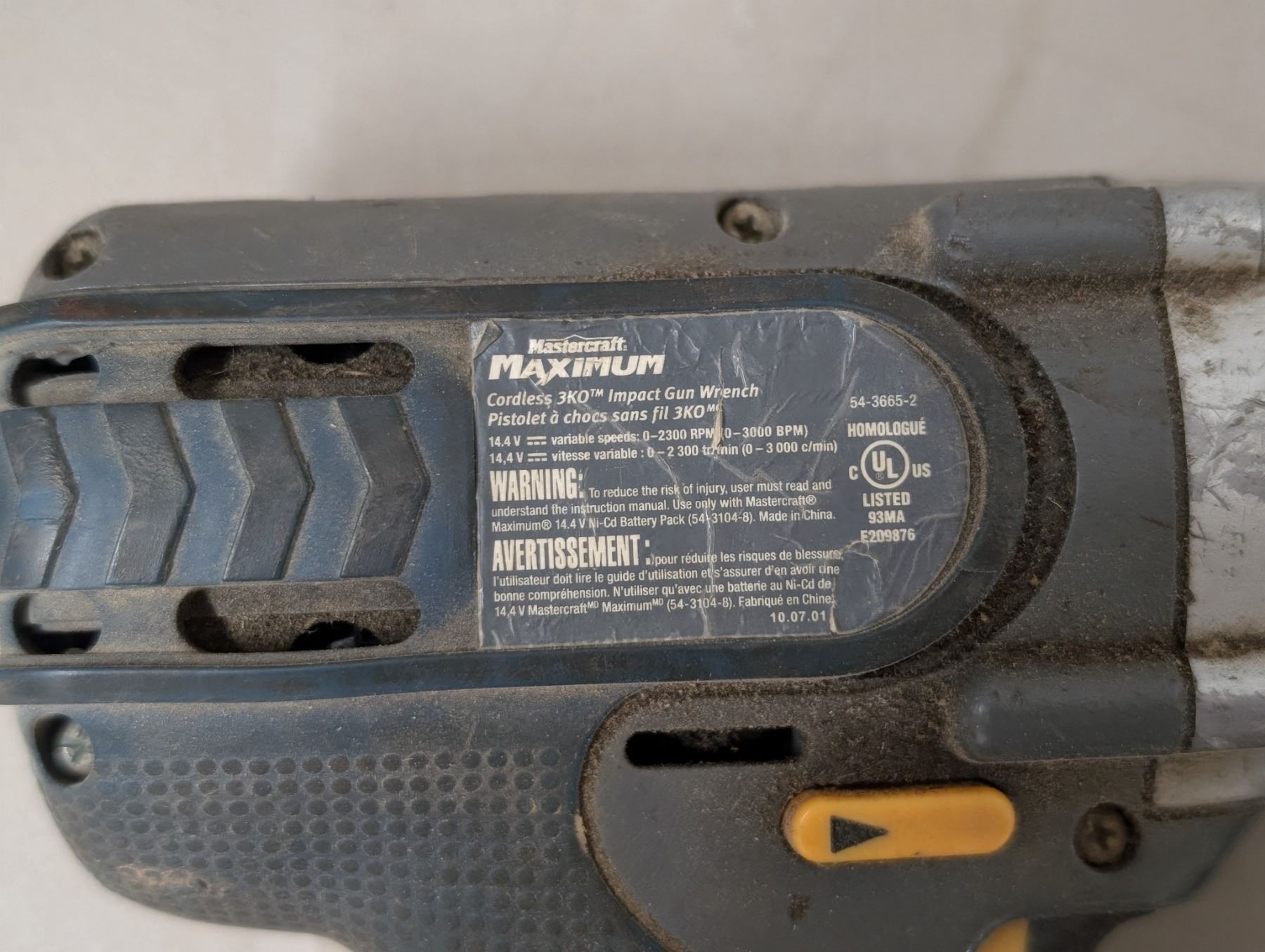 Master Craft Maximum Cordless 3KO Impact Gun Wrench w/ Charger and Battery (Works)
