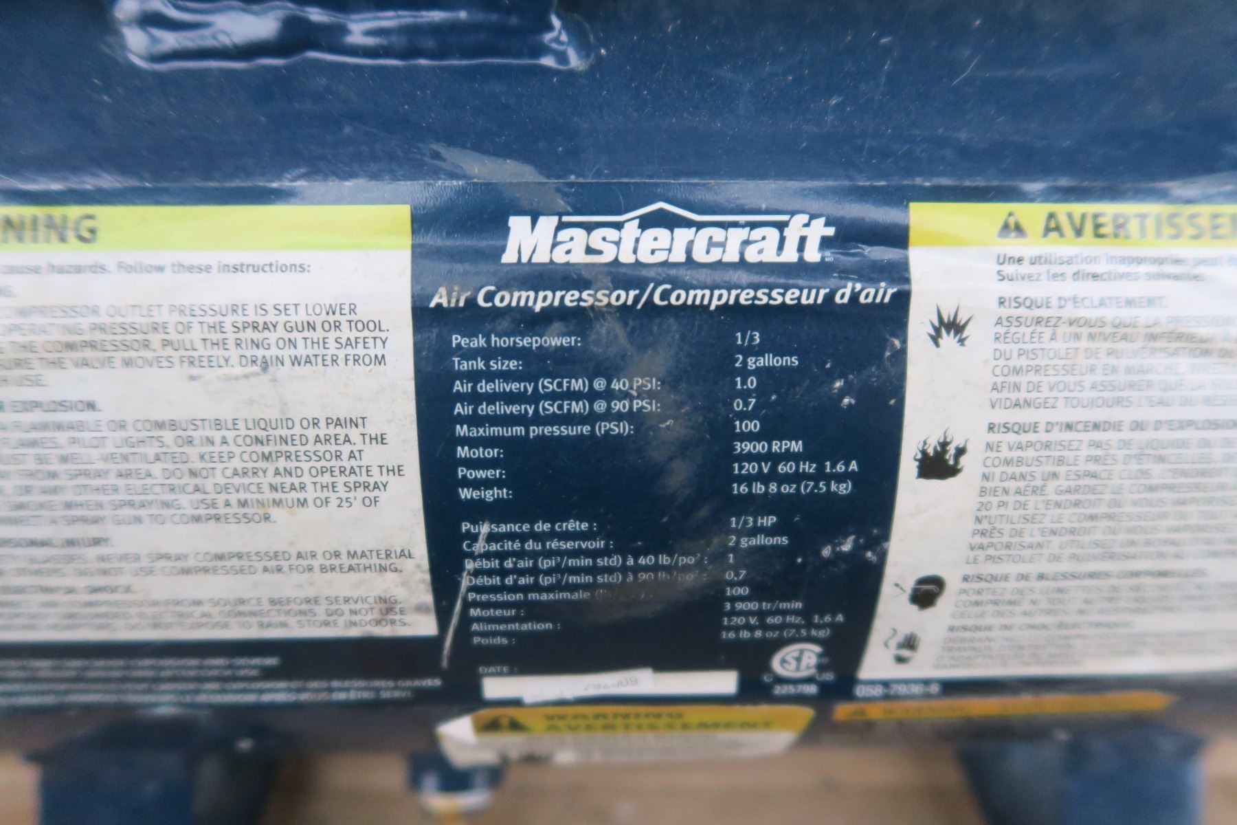 Mastercraft 2 gal air compressor