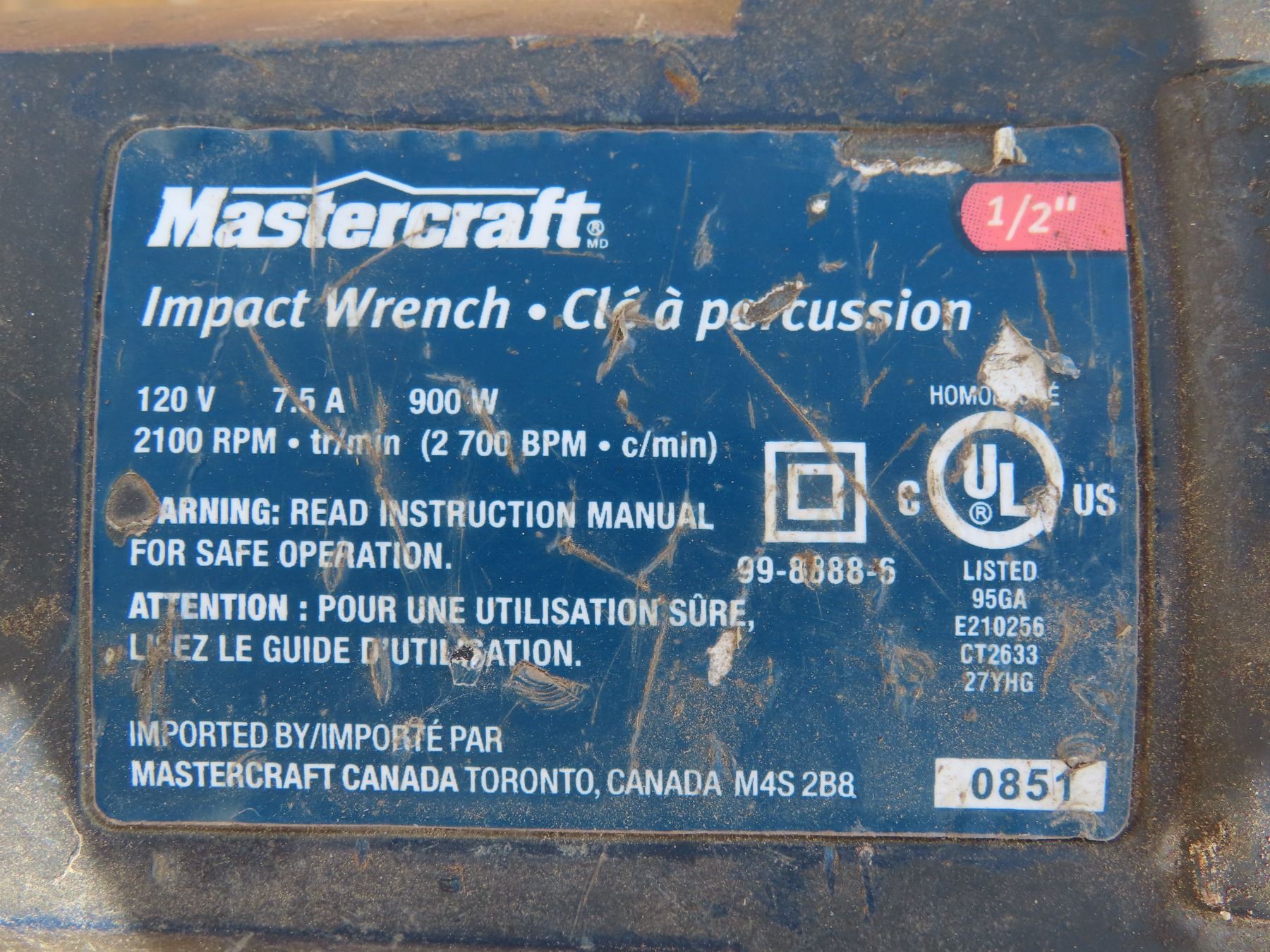 Mastercraft impact Wrench 1/2" Model: 0851