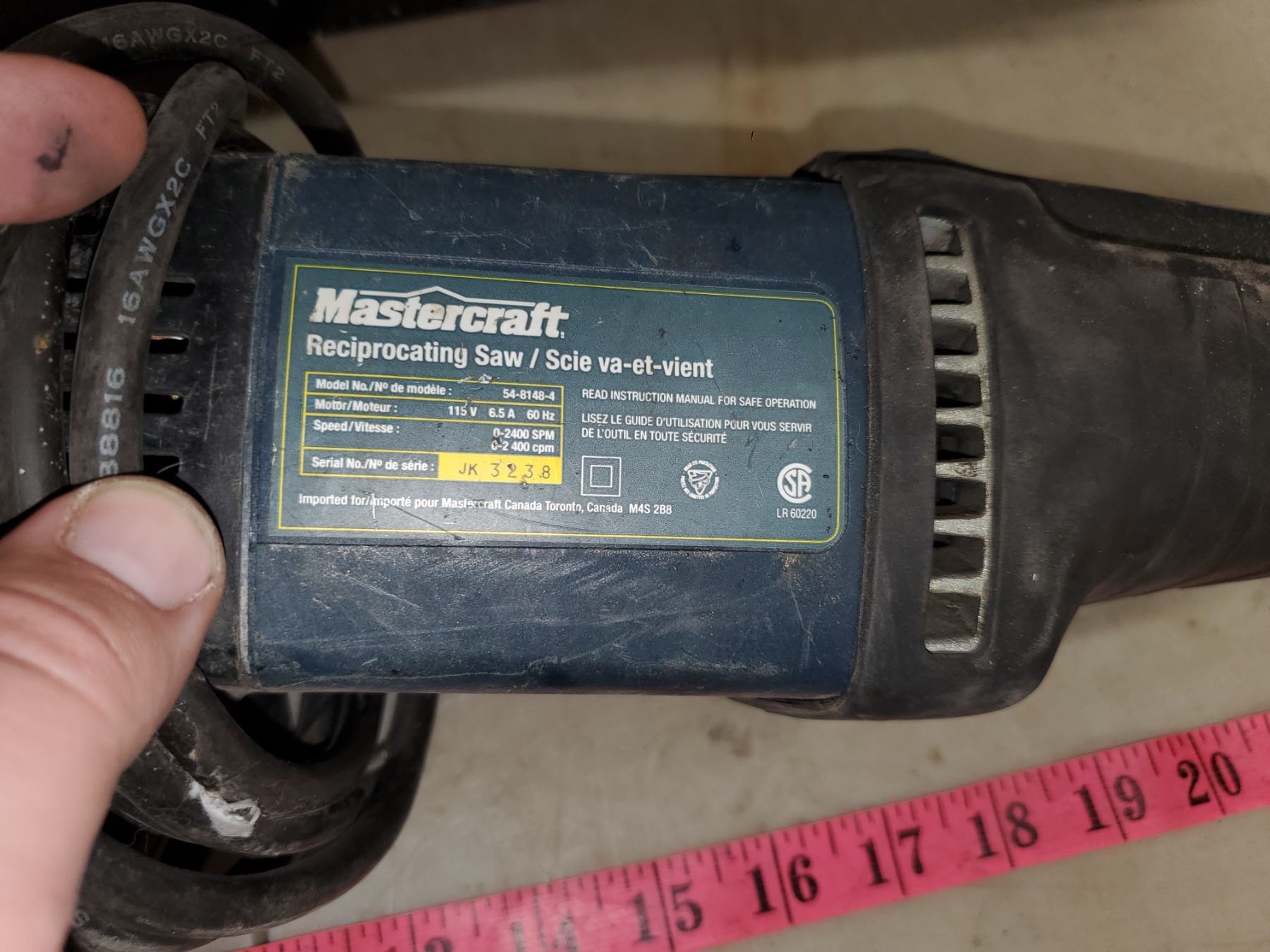 Mastercraft reciprocating saw 6.5A -tool only (working)